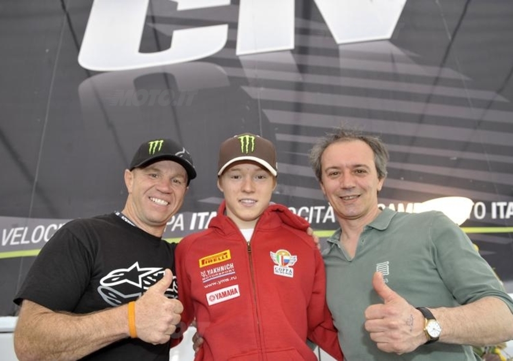 Nel box del Team Yakhnich, tra un aneddoto e l’altro, Cadalora ha dato anche qualche consiglio di guida al 17enne figlio d’arte, che all’esordio assoluto sulla difficile pista del Mugello ha chiuso le prime prove libere in tredicesima posizione (su 40 iscritti), con 1’58”876.