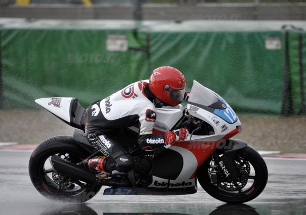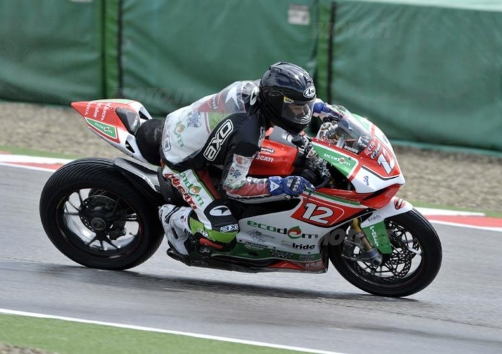 Dopo la pole centrata ieri, Ivan Goi regala un nuovo sorriso alla Ducati centrando la vittoria con la Panigale. E’ la prima in assoluto per la nuova sportiva bolognese: con questo risultato, il mantovano Goi e il Team Barni vanno in testa della classifica. La gara è stata sofferta: fermata due volte per pioggia e cadute, al terzo e definitivo restart ha visto Goi prendere il largo, bravo poi a gestire il vantaggio e a non commettere errori. Secondo, Simone Saltarelli: il marchigiano del Team Barni è riuscito a difendersi da Alessio Velini, conquistando 20 punti preziosi. Velini torna di nuovo sul podio con la BMW (2R Antonellini by Bargy Design) mentre Corradi, quarto, si è difeso su una pista poco adatta alla sua Aprilia RSV4 (Nuova M2 Racing). Bella sorpresa, il ritorno ai “piani alti” di Norino Brignola (Suzuki – Falaschi Racing), quinto.