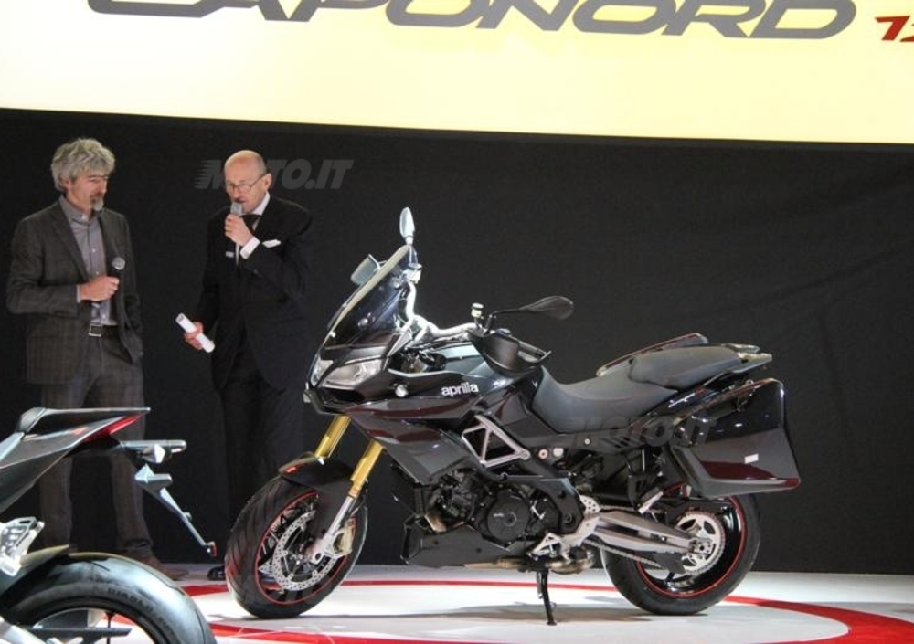 Aprilia si è tenuta per EICMA il pezzo forte del 2013: la Caponord 1200. Nome molto amato dai fan Aprilia, "Caponord" si rifà a quella ETV1000 che nel lontano 2001 era stata forse la prima vera proposta di maxienduro sportiva. Ora la base non è più il V60 da 1000cc ma lo spettacolare 1200 che già spinge la motardona Dorsoduro, incastonato in un complesso ciclistico ed elettronico di altissimo livello.