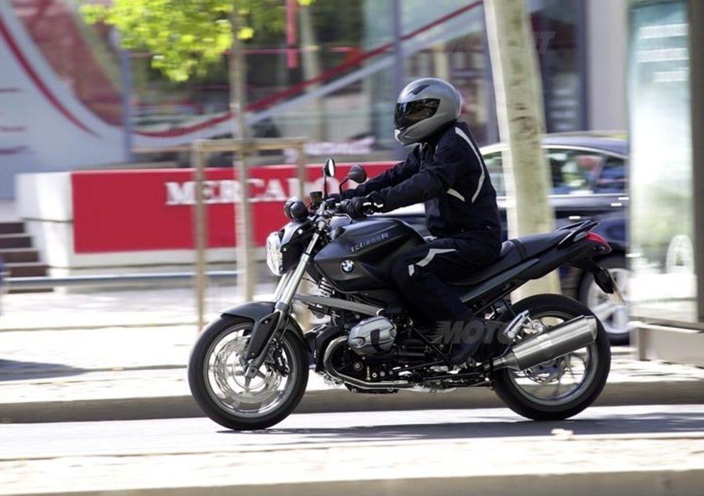 Il manubrio in acciaio è stato sostituito da un manubrio cuneiforme in alluminio. Entrambi i modelli R 1200 R sono dotati di serie di un cavalletto centrale. La nuova sella comfot assicura la massima comodità al pilota e al passeggero anche nei lunghi trasferimenti.
