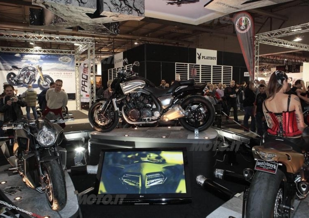 Il volto istituzionale di EICMA Custom è stato invece espresso nella giornata di martedì riservata alla stampa, con ben due anteprime mondiali: la prima con Yamaha, che sul palco di Virgin Radio ha presentato il progetto VMAX Hyper Modified, facendo reinterpretare a tre grandi customizer come Marcus Walz, Ludovic Lazareth e Roland Sands la sua “bruciasemafori” con motore V4 da 1700 cc; Headbanger ha invece presentato i suoi due nuovi modelli Summertime e Woodstock Boogie, insieme a tante altre novità.