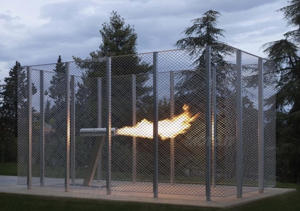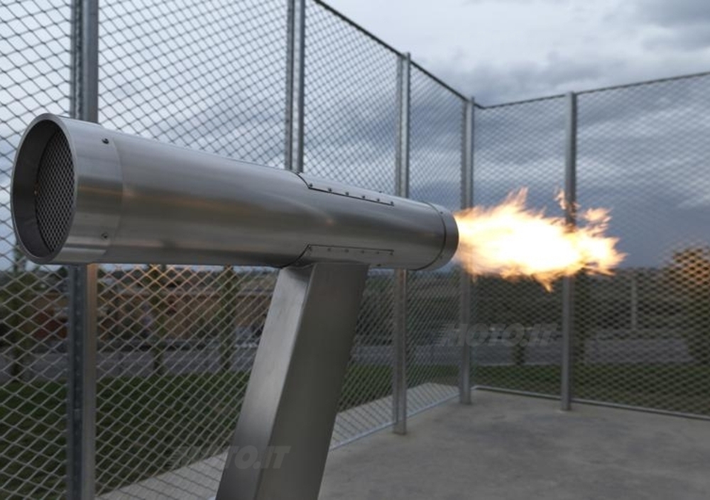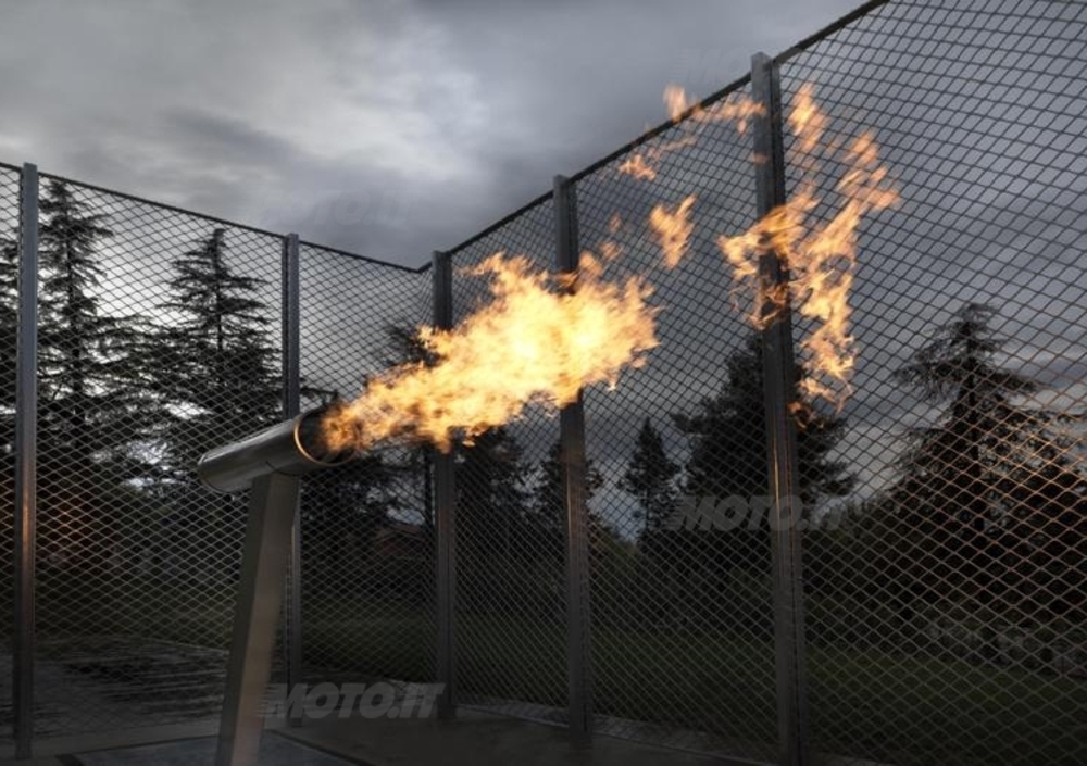 Una fiamma lunga tre metri, che spara tumultuosa e parallela al terreno per dare l’emozione della corsa, la tensione della partenza, l’impeto del duello e per testimoniare la presenza di Marco Simoncelli. Il fuoco è simbolo dell’animo di Marco che, con la sua schietta umanità, ha conquistato tutti, motociclisti e non motociclisti.