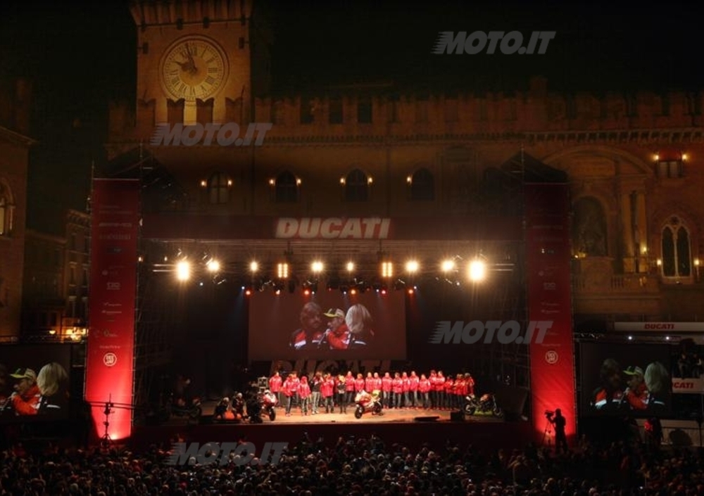 “E’ stata una giornata davvero fantastica. – ha detto Gabriele Del Torchio, Presidente Ducati Motor Holding, a fine serata - La piazza gremita che abbiamo visto questa sera parla da sola. La città ha risposto con entusiasmo e, ovviamente, tantissimi ducatisti sono arrivati da ogni parte d’Italia per festeggiare con noi Nicky, Vale e la partenza della stagione MotoGP 2011. Durante la conferenza stampa di questa sera l’assessore alle attività produttive della Regione Emilia Romagna, Gian Carlo Muzzarelli, ha ufficializzato la firma del protocollo che ci permetterà di iniziare i lavori del nuovo stabilimento. Una notizia che ci permette di ribadire l’importanza della centralità di Borgo Panigale. Una “casa” nuova, bella, funzionale ci radicherà ulteriormente nel territorio. Stiamo parlando di uno stabilimento di 134.600 mq di superficie fondiaria (+ 15% rispetto al sito attuale), 55.000 mq di superficie coperta di cui: 13.500 mq. di uffici + aree “didattico/comunicative/servizi” (museo, fondazione, auditorium, mensa), 41.500 mq. produzione, R&D, Ducati Corse e magazzini e la possibilità di edificare ulteriori 11.000 mq di superfici coperte per espansioni future. L’azienda ha un progetto importante di internazionalizzazione, per cogliere le opportunità che arrivano dai mercati di tutto il mondo, un processo che vede, comunque, Bologna al centro. Borgo Panigale sarà la testa, sarà il cuore ma anche le mani. Ovvero l’intelligenza, la passione e le capacità lavorative e le professionalità, che resteranno a Bologna. Questo non significa che non coglieremo opportunità di internazionalizzazione in giro per il mondo, ma il ruolo di Borgo Panigale sarà sempre strategico e importante. Una bella soddisfazione poter dare un annuncio simile proprio in questa magica serata.”