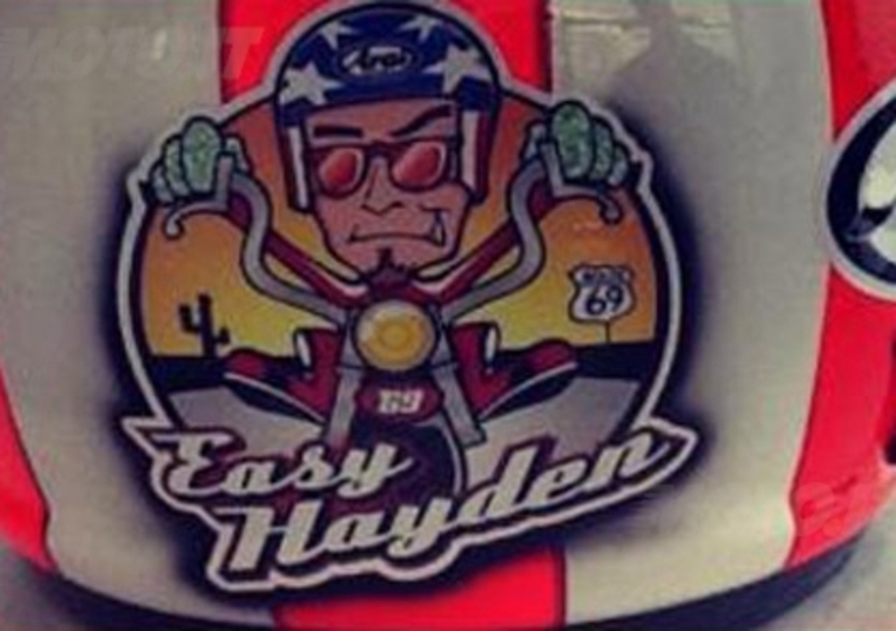 Questa volta a rendere omaggio al mito è Niky Hayden che, in occasione del GP di Laguna Seca, indosserà un casco dalla grafica inconfondibile. Pur essendo, per ovvie ragioni, un casco integrale i disegni ritraggono un jet con tanto di mento che spunta. I colori, stelle e strisce, sono gli stessi indossati da Wyatt "Capitain America" e sulla nuca, sopra alla scritta "Easy Hayden", una caricatura di Niki in sella a un