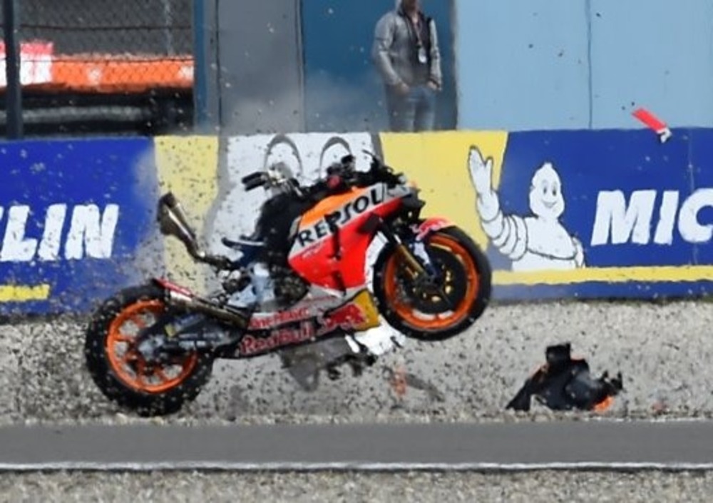 Poi, la frattura dello scafoide sinistro mentre si allenava con la moto da dirt track; poi la caduta nelle FP3 in Qatar; la caduta in gara a Barcellona; poi la violentissima scivolata nei test di lunedì a Barcellona; poi la terribile caduta di oggi, documentata su moto.it.