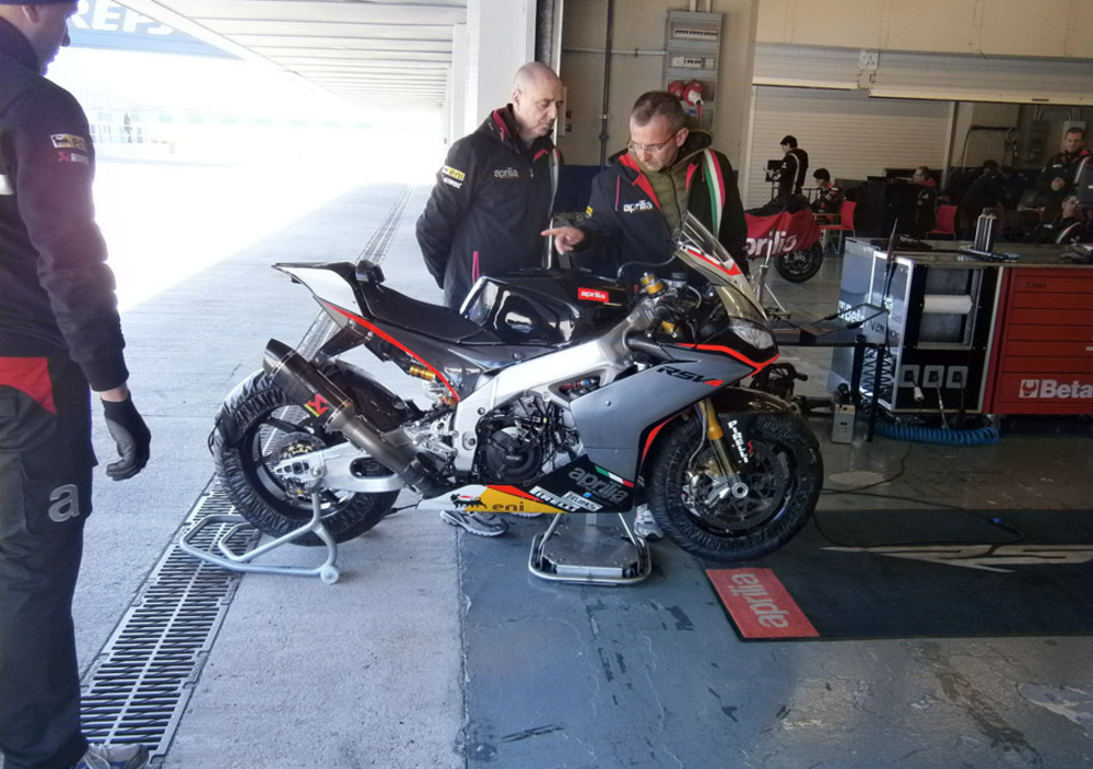 Aprilia invece, oltre ad Haslam e Torres, è al lavoro con i suoi due tester: Max Biaggi e Michael Laverty. Il primo sta lavorando sulla Superbike e si parla, senza nessuna conferma, di un suo possibile ritorno in Superbike come wild card, in almeno due gare. Laverty, fratello maggiore di Eugene, è invece impegnato nello sviluppo della nuova elettronica Magneti Marelli per la MotoGP, con software sviluppato dalla casa di Noale.