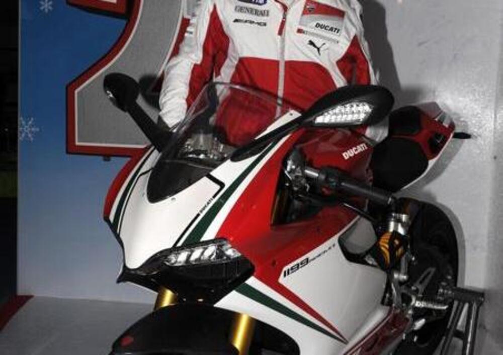Pubblico, neve e una fiammante Ducati 1199 Panigale, in versione Tricolore esposta all’ingresso del Pala Wrooom di Madonna di Campiglio, hanno accolto l’arrivo di Valentino Rossi e Nicky Hayden, alla ventiduesima edizione di Wrooom Press Ski Meeting. Oggi i due piloti Ducati saranno i protagonisti delle conferenze stampa della prima giornata dell’evento che da tradizione apre simbolicamente la stagione motoristica sportiva italiana e internazionale che proseguirà domani con Filippo Preziosi (Direttore Generale Ducati Corse) e Stefano Domenicali (Team Principal Ferrari). Giovedì sarà il turno dei piloti Ferrari e venerdì la giornata conclusiva con la spettacolare esibizione dei piloti in kart e auto sul laghetto ghiacciato.