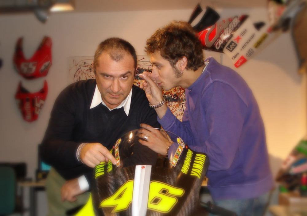 «Sono sempre stato molto appassionato di moto - spiega Aldo Drudi - e l'ho conosciuto nella discoteca di mio fratello che lo sponsorizzava. Per lui feci la prima scrittina da cucire sulla tuta bianca. Da lì è nato il mio rapporto con il mondo delle corse, e non potendo correre, decisi di trovare un modo diverso per rimanere nell'ambiente. E siccome ero bravo a disegnare, iniziai con i caschi. Prima per i piloti italiani, poi fui sdoganato da Kevin Schwantz, e con lui ho un rapporto di amicizia anche oggi».
