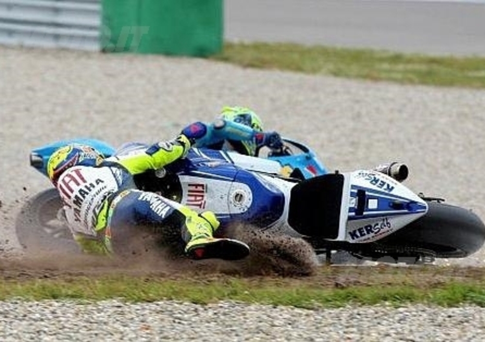Parte male - e non è una novità quest'anno - Valentino Rossi (Fiat Yamaha), solo settimo alla prima curva. A metà del primo giro, il posteriore della M1 di Valentino perde aderenza, la moto scivola e travolge un incolpevole Randy de Puniet (LCR Honda). Rossi riesce a tornare in pista, accumulando un distacco di 30 secondi.