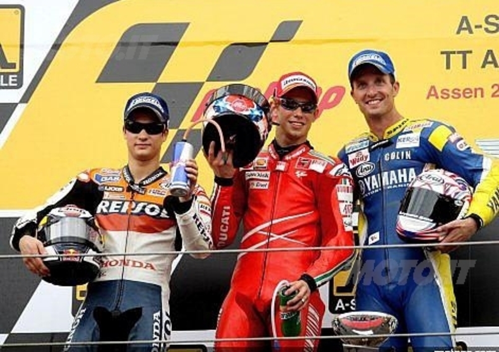 La Ducati Marlboro di Casey Stoner vince ancora sullo storico circuito dell'A-Style TT di Assen, davanti allo spagnolo Dani Pedrosa (Repsol Honda) e al texano Colin Edwards (Tech 3 Yamaha).