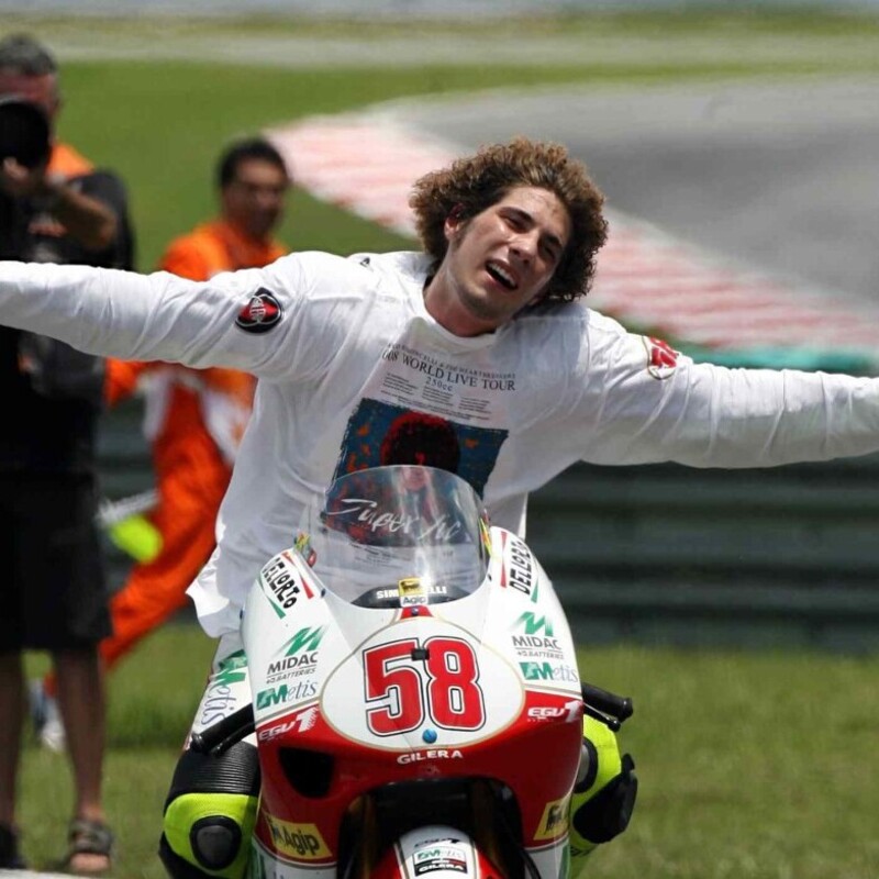 Quel giorno un destino davvero beffardo ci ha strappato un ragazzo molto amato e un campione dal sicuro avvenire. Eppure, nonostante tutto questo dolore, il 58 è sempre nel cuore di tutti con il suo sorriso, le battute, l’esuberante personalità che avevano fatto diventare Marco uno di famiglia. Un fratello, un figlio.