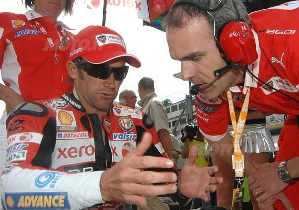 Troy Bayliss: "Sono state tre belle giornate, in cui ho riassaporato la magnifica sensazione di essere un pilota. Mi è bastato pochissimo per tornare ‘ai vecchi tempi', tuttavia tengo a sottolineare che sono anche contento di essere sulla strada per l'aeroporto e di tornare in Australia questa sera stessa: non ho alcuna intenzione di tornare a correre! Detto questo, mi sono divertito molto e spero nello stesso tempo di essere stato utile a Filippo (Preziosi). Abbiamo lavorato ogni giorno sulla moto ed ogni giorno sono riuscito a spingere un po' di più, fino a girare su tempi davvero soddisfacenti. Ora me ne starò un po' a casa, ma verso giugno o luglio tornerò in Europa per qualche settimana. Dovrei provare di nuovo la GP9 in quel periodo, non so esattamente quando, ma sono davvero contento che mi sia stata data questa opportunità!"