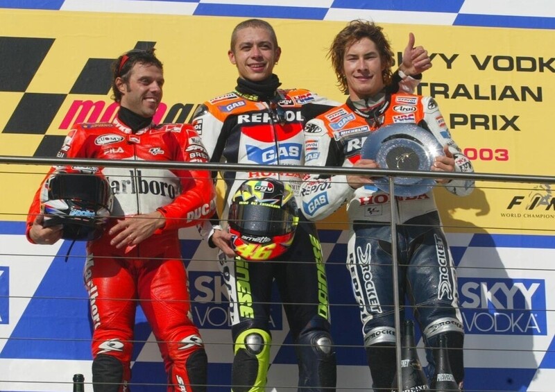 Valentino Rossi fa come Mick Doohan (che ha sostituito in sella alla Honda NSR 500): a Phillip Island gli basta un piazzamento per conquistare il titolo, ma il fenomeno di Tavullia vince anche il GP, battendo al termine di una volata leggendaria Max Biaggi (secondo a 0”013) e Loris Capirossi (terzo a 0”581), in uno dei GP più entusiasmanti per i piloti italiani e, ovviamente, per Rossi in particolare. Quella di Valentino è una dimostrazione di forza tecnica e psicologica impressionante: tanto per fare un paragone con un grandissimo campione attuale, Marc Marquez non ha ancora conquistato il titolo della MotoGP tagliando anche per primo il traguardo. Per riuscirci devi essere un fenomeno assoluto. Proprio come Valentino Rossi.