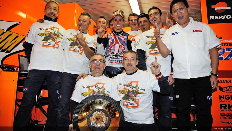 Casey Stoner è imbattuto a Phillip Island dal 2007 e nel 2011 raggiunge un traguardo che difficilmente potrà essere replicato da qualcun altro: nel giorno del suo compleanno, Casey vince il GP e il secondo titolo mondiale, davanti al pubblico di casa. Semplicemente pazzesco. E, come era già successo per Doohan nel 1998, il rettilineo sotto il podio si riempie di migliaia di appassionati, per un colpo d’occhio indimenticabile. Sul podio assieme a Stoner salgono Marco Simoncelli (secondo podio e anche miglior risultato della sua carriera in MotoGP) e Andrea Dovizioso.