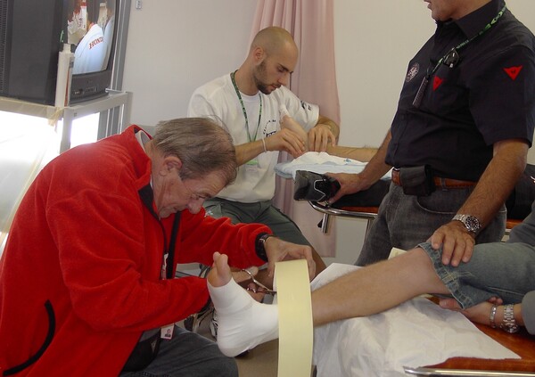 Ma non era solo questo. Lui sapeva improvvisarsi esperto massaggiatore e autentico maestro di bendaggi che nessun manuale universitario saprebbe spiegare o riprodurre, capacissimo di reinventarseli ed evolverli all’occasione in funzione di ciò che Costa e il pilota ferito chiedevano per continuare a correre. Davvero un mago e un personaggio particolarissimo, anche nel modo tutto suo di esser simpatico fuori dal lavoro.