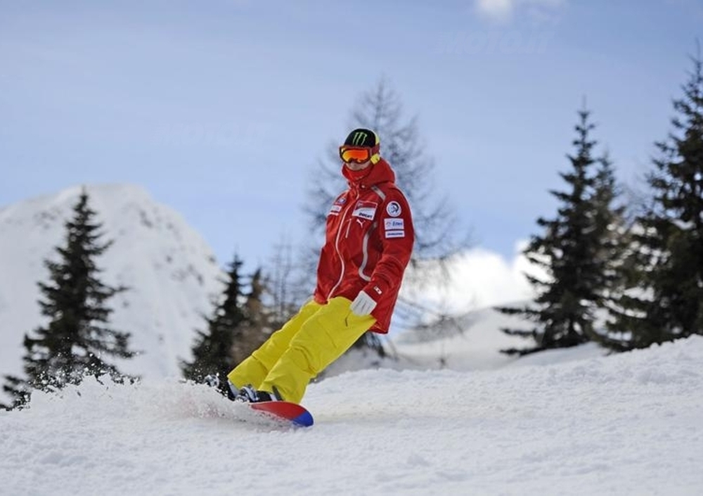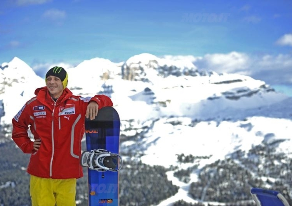 Nonostante Rossi lamenti ancora problemi alla spalla non riesce a rinunciare ad un pomeriggio sulla neve. Anche dalle foto però è evidente con quanta prudenza affronti la discesa.
