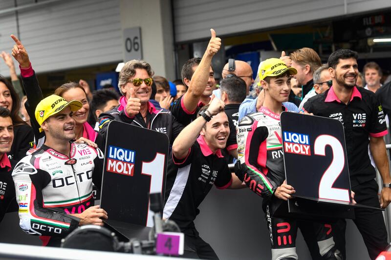 A quel punto, dietro a Fenati, sono rimasti in tre, fino al traguardo. Arbolino è riuscito a precedere di millimetri McPhee, che ha ripassato al fotofinish Vietti (15 millesimi!).