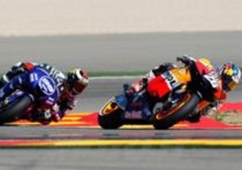Guardate attentamente il sorpasso di Pedrosa su Lorenzo al settimo giro, poi decisivo per la gara: è di una difficoltà estrema, perché Jorge lascia uno spazio minimo e bisogna continuare a frenate mentre si è già piegati un bel po’. Davvero fantastico.