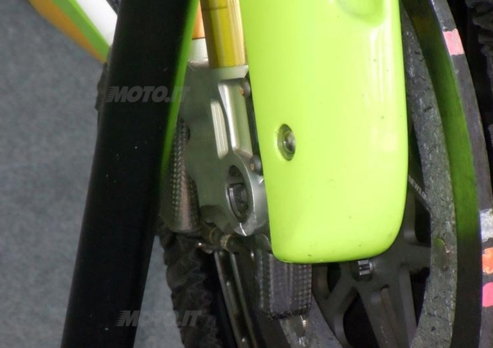 In Ducati si lavora continuamente per aggiornare la GP11.1, la moto che dal GP d’Olanda viene utilizzata da Valentino Rossi. Visivamente, però, è difficile cogliere delle differenze. Una piccola, però, si vede: adesso il perno della ruota anteriore è fermato da un dado sulla destra della forcella, mentre prima, come si può vedere dalla foto (che si riferisce alla GP11 di Capirossi, ma sono così tutte le altre Desmosedici) era filettato all’interno dello stelo stesso. Anche questo piccolo particolare ha migliorato la guidabilità della moto.