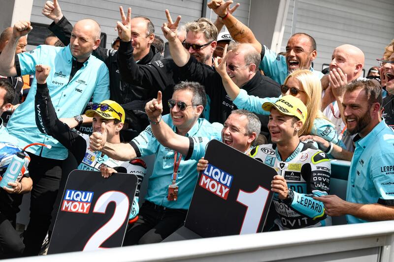 SACHSENRING - Nel nome di Marquez: Alex Marquez segue le orme di Marc e domina il GP di Germania di Moto2. Lo spagnolo, fratello del campione della MotoGP, ha però avuto nei tubi di scarico della sua Kalex il sudafricano della KTM Brad Binder, staccato sul traguardo di soli 1.2 secondi. Terzo posto per l'altra Kalex, quella del pilota di casa Marcel Schrotter, a 1.6 secondi dal vincitore.