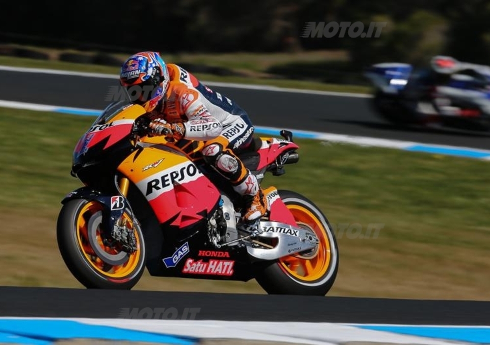 Mick Doohan, 47 anni, cinque titoli mondiali consecutivi in 500 (dal 1994 al 1998) è tornato in sella a Phillip Island per qualche giro di pista il sabato e la domenica prima del GP. Doohan ha utilizzato una RC213V, arrivata appositamente dal Giappone, giudicata come “una moto molto più potente e docile della mia NSR500”. Mick aveva chiesto alla HRC di montare il freno posteriore al manubrio, come quando correva, ma non c’era il tempo materiale per farlo e così Doohan ha chiesto perlomeno di togliere la leva dalla pedana destra, per la paura di azionarla inavvertitamente con la gamba destra, che ha perso sensibilità dopo il terribile incidente del 1992 ad Assen, quando rischiò l’amputazione.