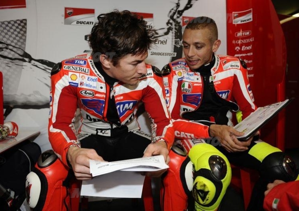 Più categorico Valentino, che conferma diverse dichiarazioni espresse a mezza voce in precedenza – l’aver capito subito, dal primo test, la gravità della situazione tecnica della Desmosedici ma anche l’aver realizzato già durante il primo anno come un ritorno alla competitività per la V4 bolognese in tempi brevi non rappresentasse che una chimera. Parole molto dure, rafforzate da una dichiarazione di stima per Stoner quale mai si era sentita, stante l’antipatia che li aveva sempre divisi. «Casey ha fatto un lavoro incredibile con la Ducati e se riguardo la sua telemetria non capisco come abbia fatto. La gente pensa che Stoner fosse molto veloce, ma poco intelligente e per questo alla fine ha fatto il botto. Ma la realtà è che con la Ducati ha dovuto guidare sempre oltre il limite, andare più forte possibile. E se guidi così, alla fine ti schianti»
