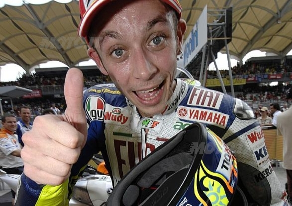 GUIDO MEDA: "Fine prove, giro di rientro. Valentino ti vede a bordo pista e ti fa un saluto con la mano. Succede. E' uno stacco fulmineo, banale in apparenza, che è però una firma: il segno di un'attenzione desta, alla moto finché serve, all'uomo quando può. Separa i momenti, li scioglie, cambia, ragiona. E' così che chiunque, da sempre, vuole il suo campione da poster. Il Valentino che conosco prima di tutto batte la banalità nella quale un mito può scadere. Ora ha trent'anni. Dico: e allora? E' come prima, giù qui, sulla terra. Spietato e perfezionista a trecento, custode affabile e curioso del proprio gusto per una vita interessante, ma normale. Dopo 8 titoli e 97 vittorie vorrei essere sicuro di raccontarlo come è giusto che si racconti un mito eppure continuo a non trovare che parole semplici".