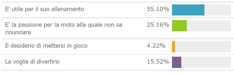 Pur con i limiti statistici di un sondaggio al quale si può decidere liberamente di rispondere o meno, e senza la composizione di un campione tipo, le risposte hanno comunque il sapore di un referendum a favore della scelta fatta a Rossi: ha fatto bene e fa bene a guidare qualsiasi tipo di moto in allenamento.