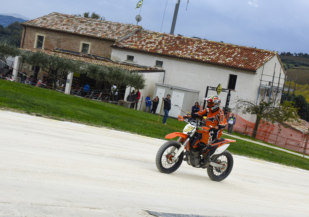 Parcheggiata la macchina, si viene accolti dalle persone che curano la pista, sempre la stesse dal tempo della “cava”: sono soprattutto amici di Graziano, ed è bello che il loro rapporto si sia mantenuto inalterato negli anni. Del resto, anche a fianco di Valentino ci sono sempre gli stessi ragazzi, cresciuti assieme al campione. A fianco della pista c’è una casolare che ti ospita con un bel camino acceso: ci sono un paio di stanze, una che serve da spogliatoio dove Rossi e gli altri piloti si cambiano, un’altra che funge da sala pranzo. Davanti, un grande porticato, che quando si gira viene trasformato nei box: è qui che vengono allineate le moto, è qui che ci si scambiano le prime impressioni. A fianco, una costruzione più piccola, una sorta di “capanno dei sogni”: all’interno ci sono moto di ogni tipo, marca e cilindrata, tutte preparate per il “flat track”, tutte a disposizione. I piloti che vengono solitamente a girare qui lo fanno con la loro moto, ma per gli altri, per gli ospiti, ecco il “capanno dei sogni”: si può scegliere quella che si preferisce, tranne, naturalmente, le Yamaha 450 usate da Valentino.