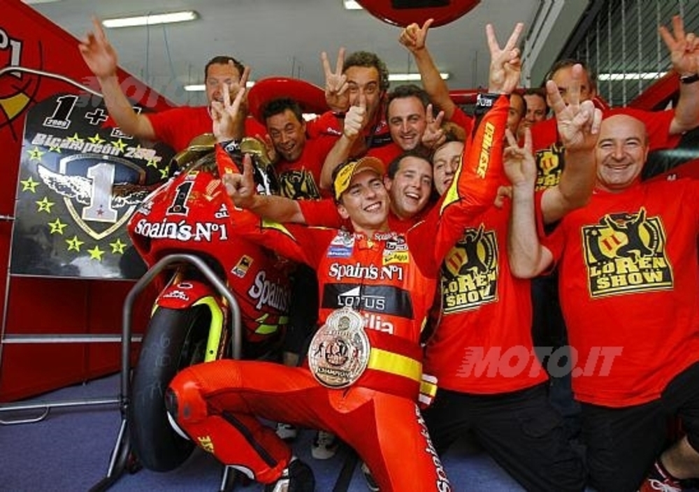 “E’ Incredibile – ha commentato Lorenzo – non so come spiegarlo ma sono più contento dello scorso anno. Mi vengono in mente tutti i momenti in cui ho lavorato per arrivare fino a qui, da quando avevo tre anni con le minimoto fino ad ora con il team di Dani Amatriain, e tutti i miei tifosi che mi hanno sempre sostenuto e questa vittoria la dedico anche a loro. Ho cercato di vincere la gara in tutti i modi, ma Aoyama era imprendibile così questo terzo posto mi va benissimo, giusto premio per il lavoro svolto in questi giorni. Tutti mi dicevano che è sempre difficile riconfermarsi campione del mondo, in effetti è stato così perché le pressioni sono maggiori, sono riuscito a vincere ancora e devo ammetterelo anche con un po’ di fortuna perché è andato sempre tutto bene, sia a me che non mi sono mai infortunato che alla moto che non si è mai rotta. Sono triste di dover lasciare l’Aprilia perché battere la Honda, il colosso motoclistico mondiale, non è mai facile ed insieme siamo riusciti a farlo per ben due volte e questo è incredibile. Insieme abbiamo passato momenti bellissimi e mi hanno aiutato sempre tantissimo, per questo auguro ad Aprilia e a tutti coloro che ci lavorano ancora tante vittorie ed altri titoli mondiali”.