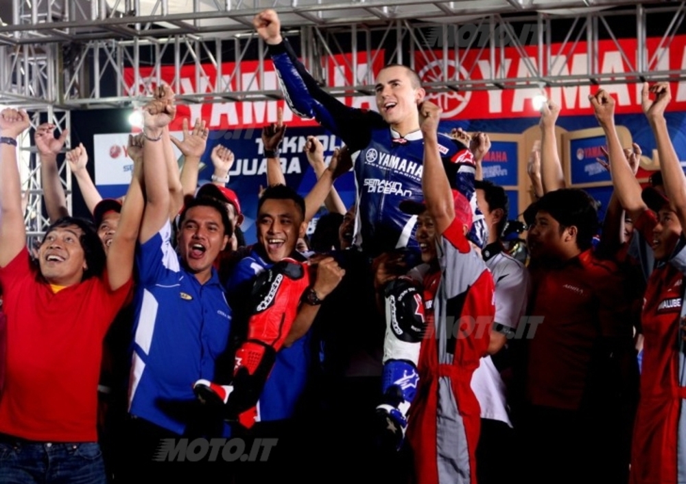 Jorge Lorenzo ha concluso venerdì il suo primo giorno di permanenza in Indonesia, un paese dove gode di grande popolarità e che lo vede amato da molti fan. E' la quarta volta che il pilota spagnolo visita il paese asiatico, ma per la prima volta, in questi giorni, lo fa da Campione del Mondo.