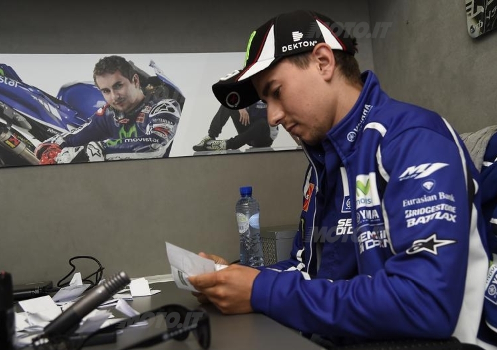 Jorge scende dalla saletta all’interno dell’hospitality Yamaha nella quale ci ha accolto e va alla conferenza stampa con tutti i giornalisti: dura una quindicina di minuti, durante i quali si parla solo di “mercato piloti”. Per la felicità di Lorenzo