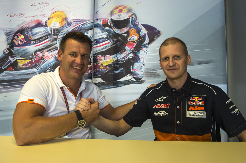 Il perché puntare su un team Moto2 era stato già motivato da Stefan Pierer , e in quest'occasione è stato ribadito da Pit Beirer, numero uno di KTM Motorsport e nella foto qui sotto alla firma dell'accordo con Aki Ajo: «Vediamo la Moto2 come una piattaforma nella quale far crescere i piloti KTM nel loro percorso dalla Rookies Cup alla MotoGP».
