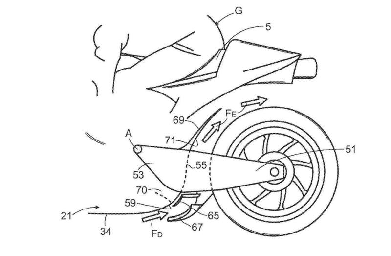 Aprilia rivela di aver pensato anche di poter utilizzare un ulteriore elemento da montare davanti allo pneumatico posteriore e molto vicino ad esso. Dimensionando in maniera opportuna questo elemento e curandone il montaggio che potrebbe prevedere più posizioni, si riuscirebbe a gestire anche la temperatura della gomma in maniera dinamica.