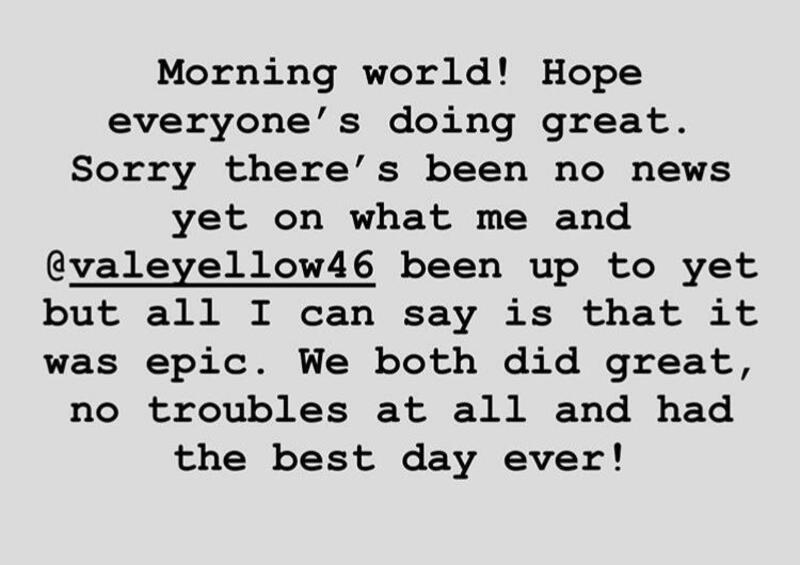 Sean Connery in un film di 30 anni fa diceva: "il mondo tremerà al rumore del nostro silenzio". Ecco, senza scomodare tremori e altre sconcertanti vibrazioni emotive, il silenzio che è seguito all'attesissimo confronto tra Hamilton e Rossi sta tenendo gli appassionati di MotoGP e Formula 1 con un più prosaico fiato sospeso. Nessun video, neanche una foto, nemmeno un post, una story o un cinguettio... nulla! Neanche un cenno nel variopinto bestiario delle esternazioni sociali telematiche.