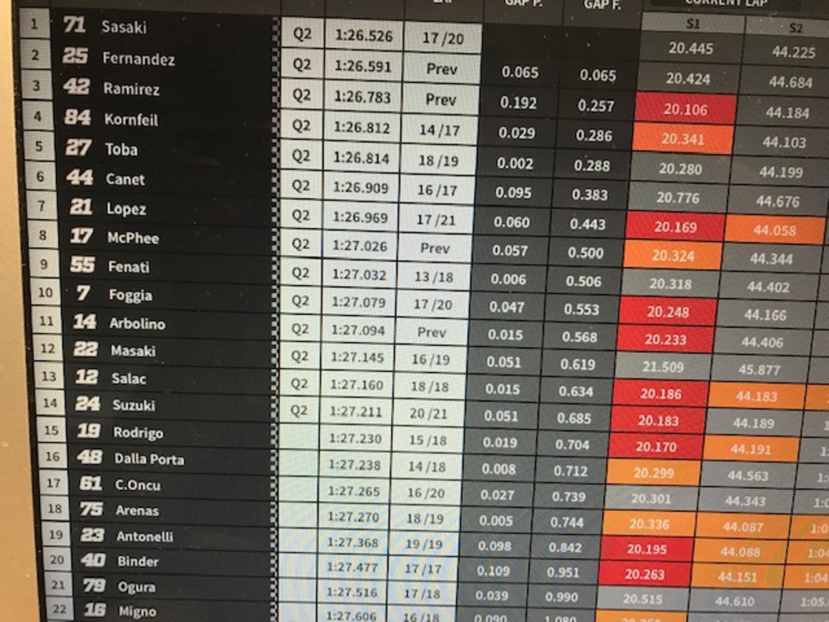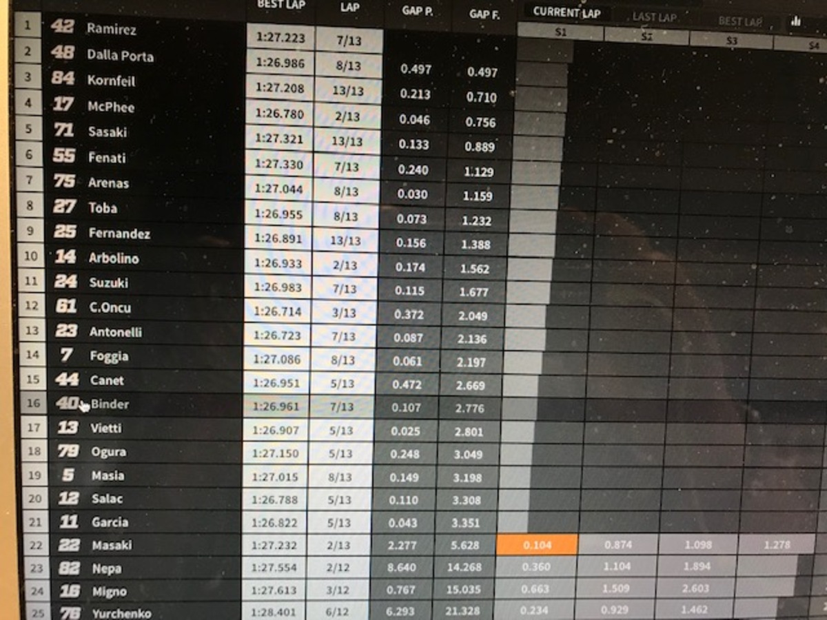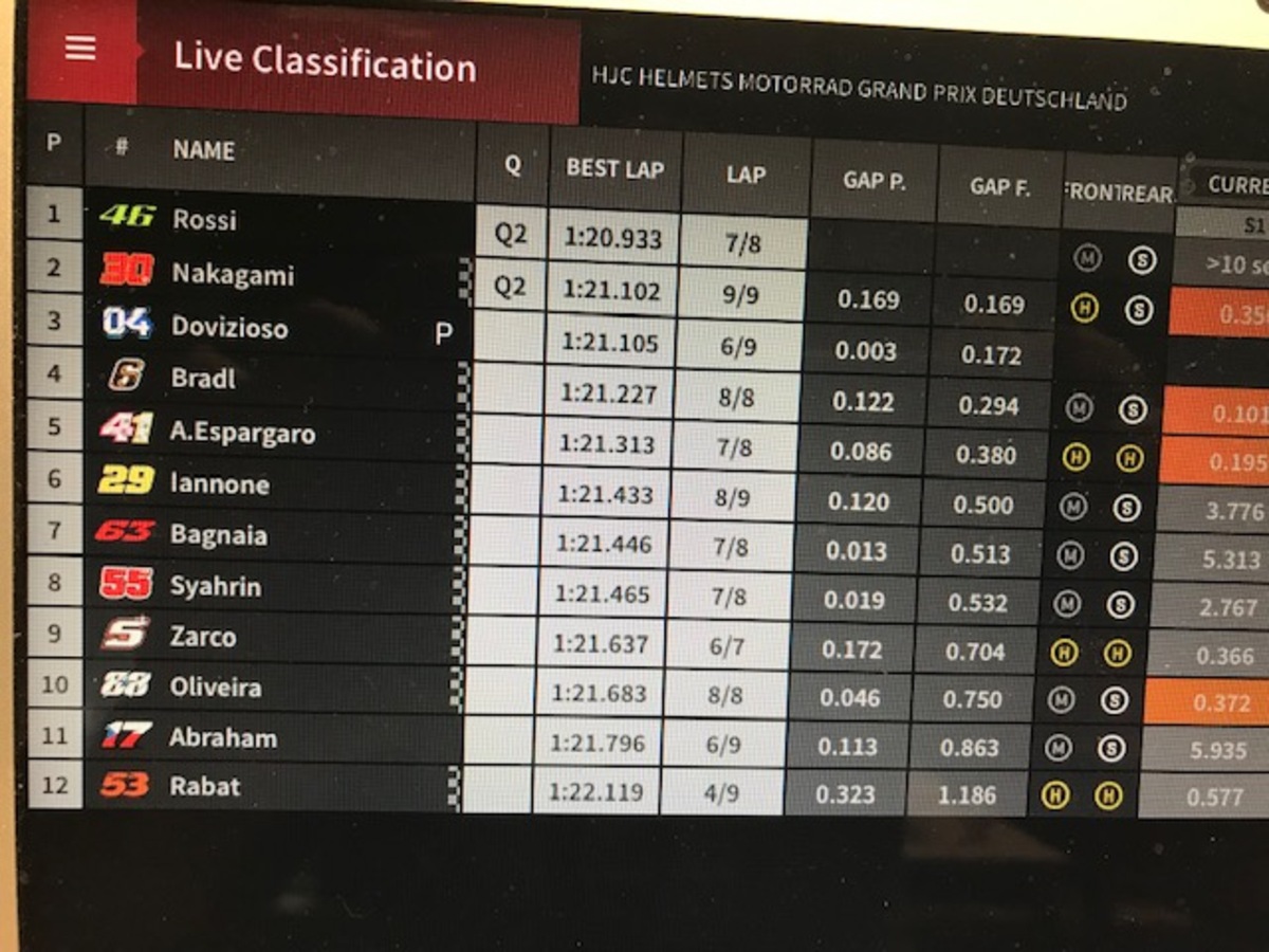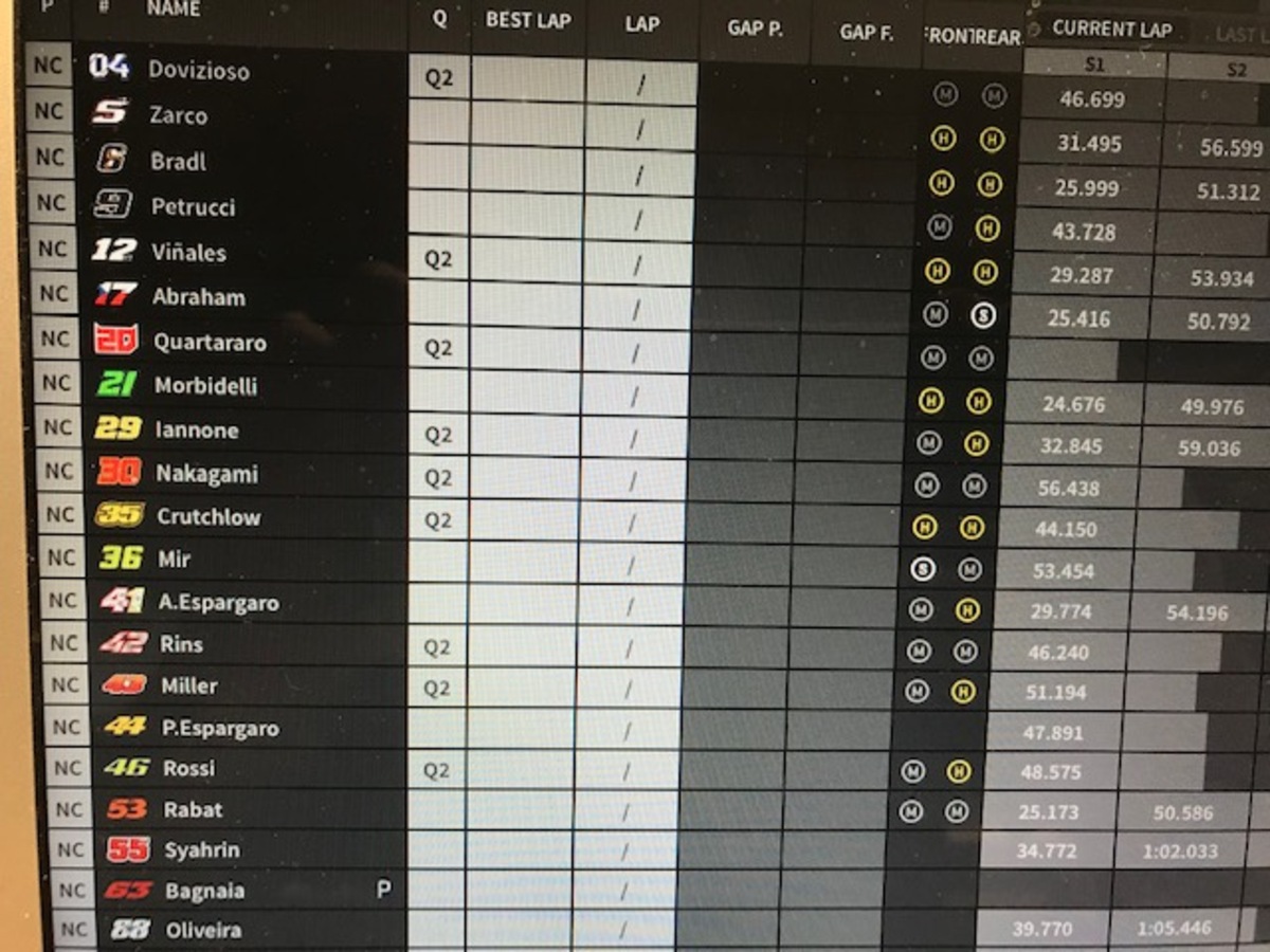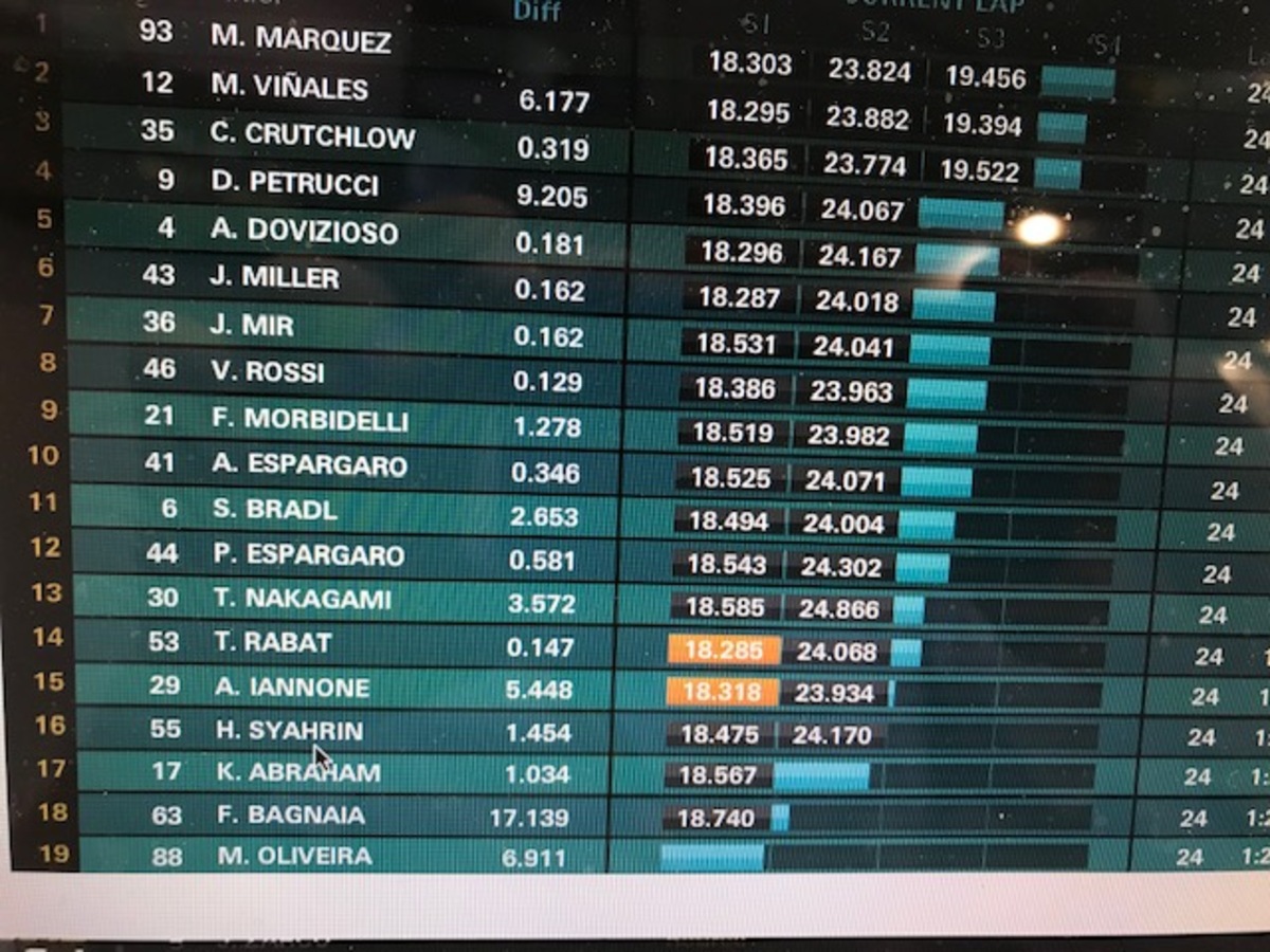 Rossi è sempre dietro a morbidelli, non ha mai nemmeno provato un sorpasso: come dice l’ingegnere Bernardelle sembra sempre in difficoltà con l’anteriore