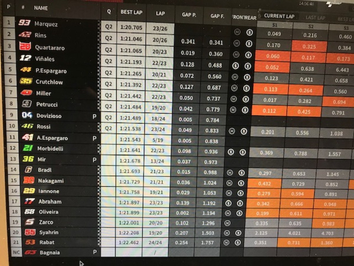Rins 1’21”665 vinales 1’21”901 le ducati girano in 1’22”1