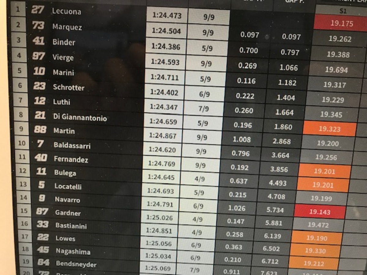 Rins: S/M 25 giri, il migliore 1’21”967 (5).