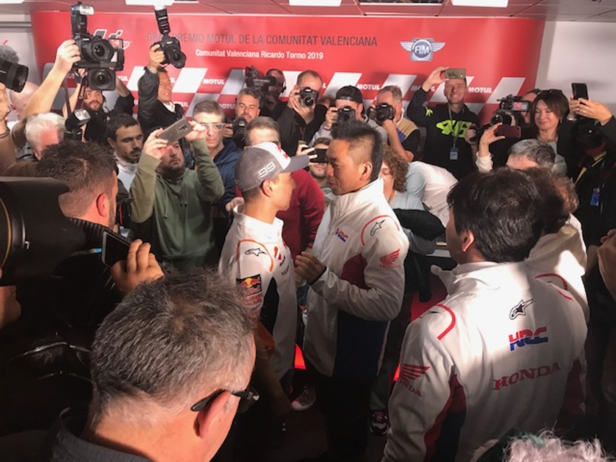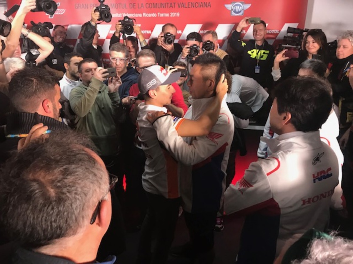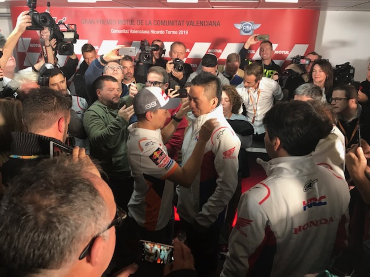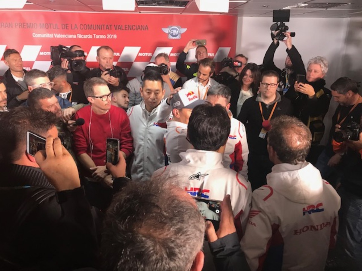 Marc Marquez: “Al momento, sembra che io e Vinales siamo quelli più veloci e costanti, ma vanno forte anche Quartararo e Rins, mentre le Ducati oggi sono sembrate un po’ più in difficoltà. Da dopo che abbiamo vinto il titolo, abbiamo iniziato a lavorare pensando al 2020, cambiando un po’ la strategia del venerdì, per testare alcuni componenti. Anche oggi ho fatto così, senza però trascurare la preparazione della gara. Questo è un circuito molto insidioso con il freddo, specie in due punti, alla curva 4 e alla 10/11: se è come nelle FP1 si è un po’ al limite, bisogna stare attenti. Fortunatamente la Michelin ha portato le gomme giuste, le mescole vanno bene. Conquistare il titolo dei “team” non è semplice, ma non impossibile. Chi vorrei come compagno di squadra? La risposta la potete immaginare, ma non è compito mio, la Honda deve decidere se puntare su un giovane o su un pilota di esperienza. Io non metterò alcun vincolo: avrei già potuto farlo due anni fa, dire firmo se… (prendete mio fratello, NDA), ma non l’ho fatto e non lo farò mai e non è necessario. Per quanto mi riguarda, sono già orgoglioso che il campione del mondo della moto2 sia nella lista della Honda. Ho sempre detto che il mio sogno è di correre con Alex in MotoGp, non importa con quale moto, ma non ho mai mischiato gli interessi personali a quelli professionali. La Rc213V è una moto difficile, ma è sempre una Honda, una moto con la quale ho vinto 11 gare e 17 podi… Io e la Honda abbiamo già iniziato a parlare del prossimo contratto: come ho sempre detto, la Honda è la mia prima scelta, la priorità. Ho chiesto alcune cose, loro altre, bisogna trovare il giusto compromesso. Per quanto mi riguarda, sono concentrato soprattutto sulla parte tecnica”.