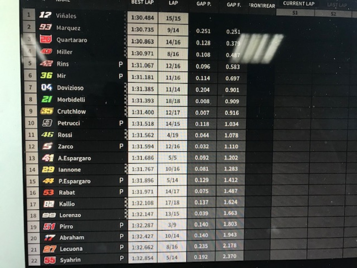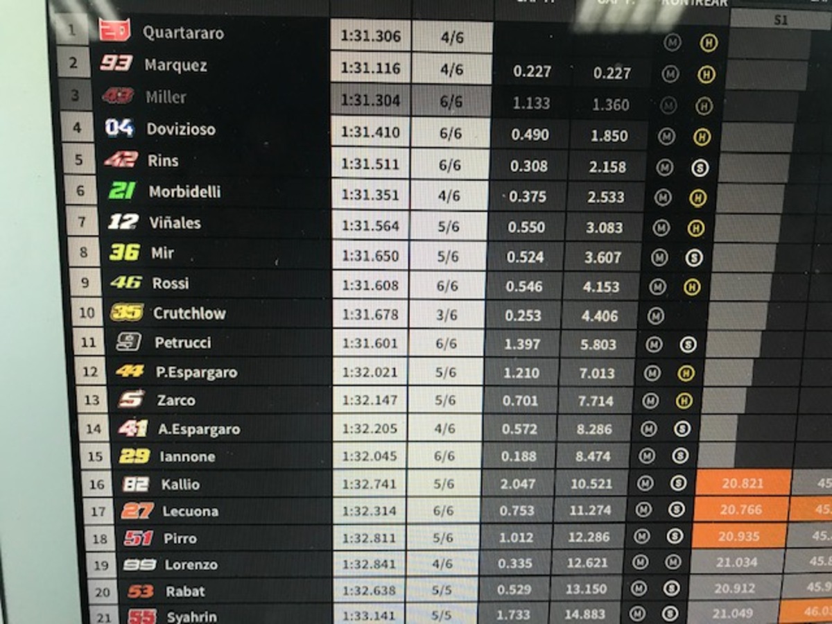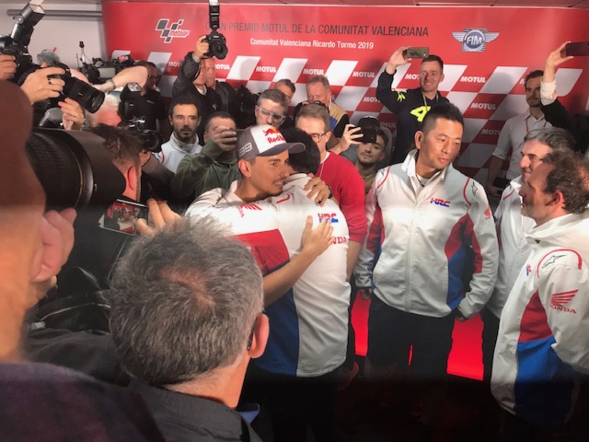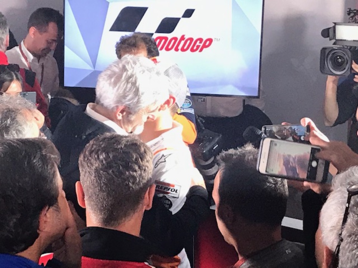 Marc Marquez: “Al momento, sembra che io e Vinales siamo quelli più veloci e costanti, ma vanno forte anche Quartararo e Rins, mentre le Ducati oggi sono sembrate un po’ più in difficoltà. Da dopo che abbiamo vinto il titolo, abbiamo iniziato a lavorare pensando al 2020, cambiando un po’ la strategia del venerdì, per testare alcuni componenti. Anche oggi ho fatto così, senza però trascurare la preparazione della gara. Questo è un circuito molto insidioso con il freddo, specie in due punti, alla curva 4 e alla 10/11: se è come nelle FP1 si è un po’ al limite, bisogna stare attenti. Fortunatamente la Michelin ha portato le gomme giuste, le mescole vanno bene. Conquistare il titolo dei “team” non è semplice, ma non impossibile. Chi vorrei come compagno di squadra? La risposta la potete immaginare, ma non è compito mio, la Honda deve decidere se puntare su un giovane o su un pilota di esperienza. Io non metterò alcun vincolo: avrei già potuto farlo due anni fa, dire firmo se… (prendete mio fratello, NDA), ma non l’ho fatto e non lo farò mai e non è necessario. Per quanto mi riguarda, sono già orgoglioso che il campione del mondo della moto2 sia nella lista della Honda. Ho sempre detto che il mio sogno è di correre con Alex in MotoGp, non importa con quale moto, ma non ho mai mischiato gli interessi personali a quelli professionali. La Rc213V è una moto difficile, ma è sempre una Honda, una moto con la quale ho vinto 11 gare e 17 podi… Io e la Honda abbiamo già iniziato a parlare del prossimo contratto: come ho sempre detto, la Honda è la mia prima scelta, la priorità. Ho chiesto alcune cose, loro altre, bisogna trovare il giusto compromesso. Per quanto mi riguarda, sono concentrato soprattutto sulla parte tecnica”.