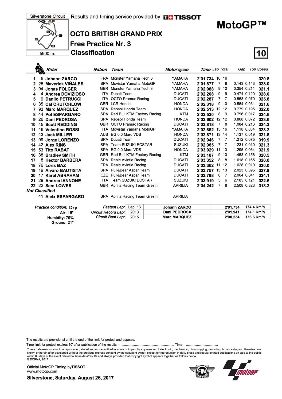 vinales lorenzo crutchlow marquez rossi bautista zarco a.espargaro redding dovizioso. iannone 18esimo petrucci 19esimo