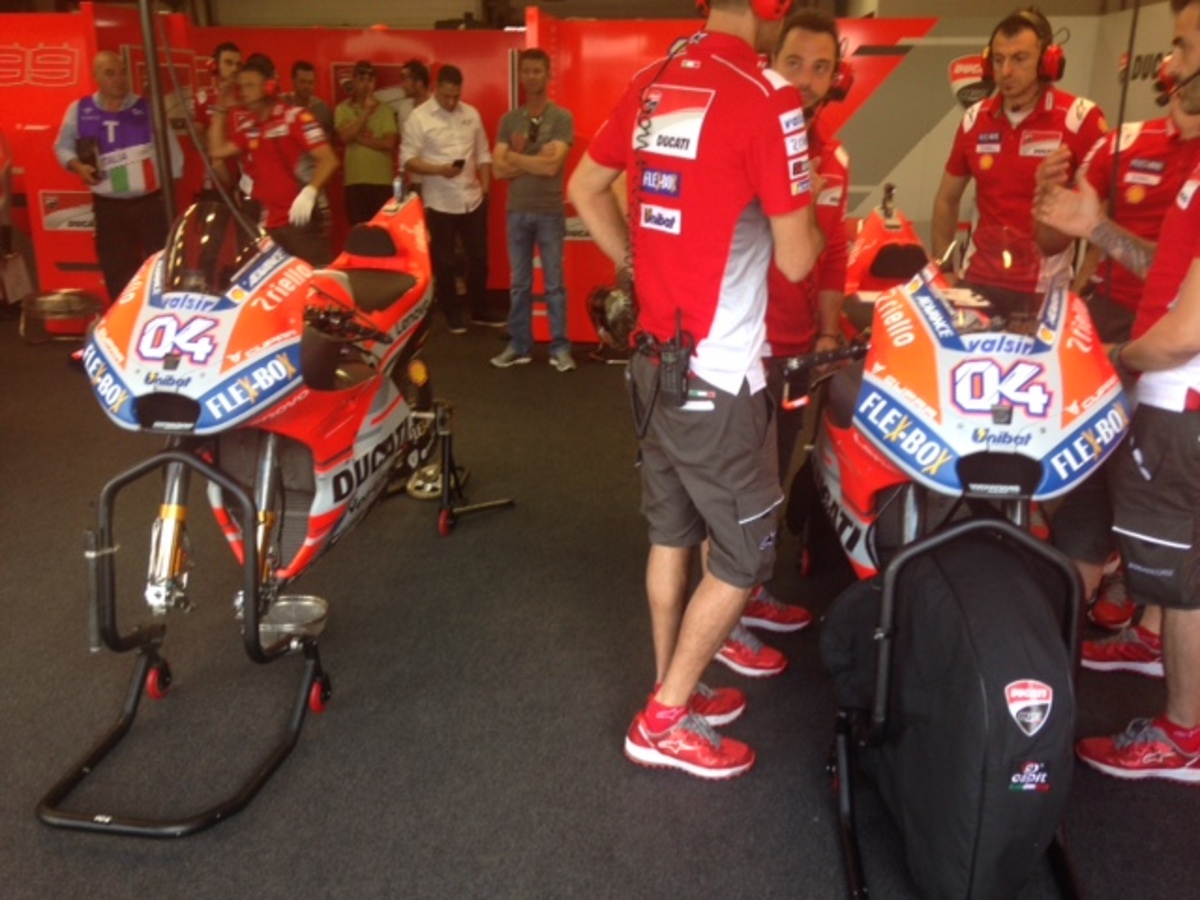 Adesso i tecnici ducati stanno intervenendo sulla sodo posteriore. Solo una regolazione