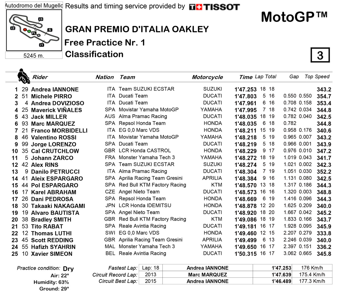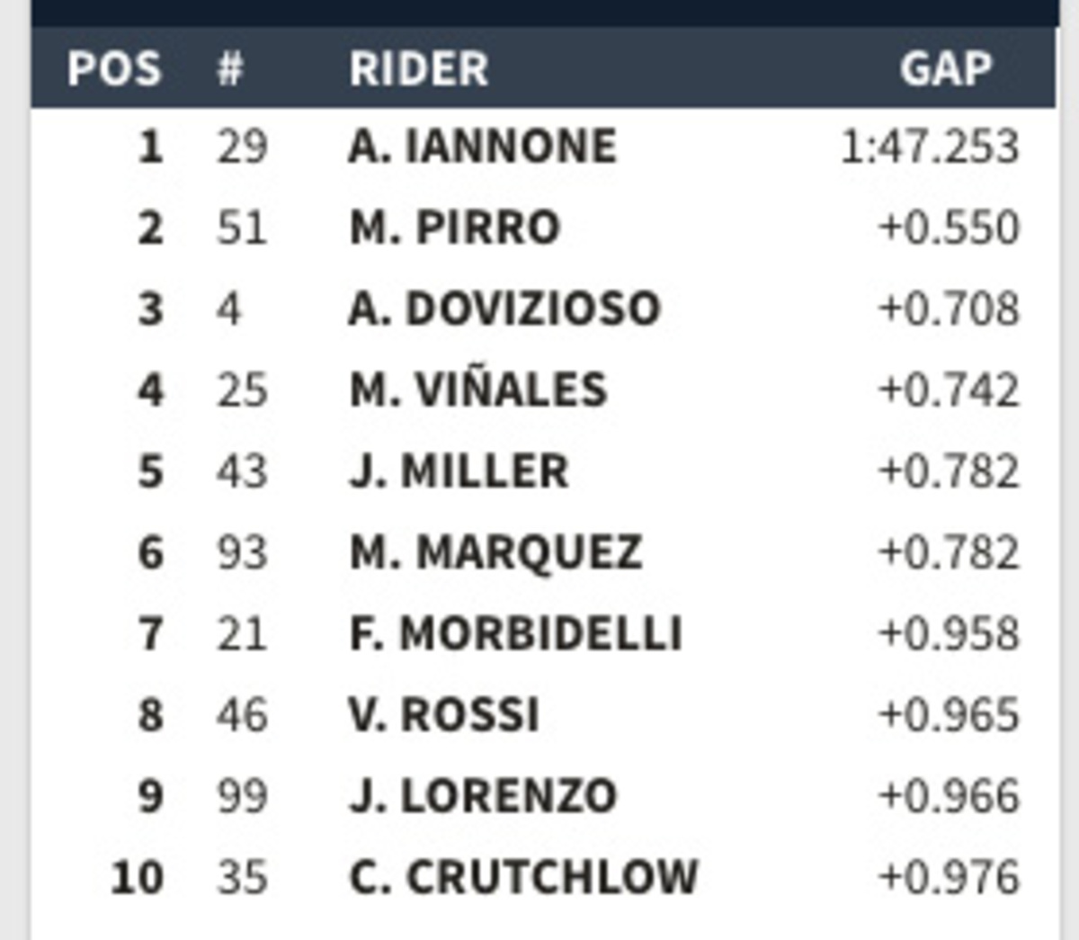 Pirro 1:47.803 davanti a Iannone e Rossi