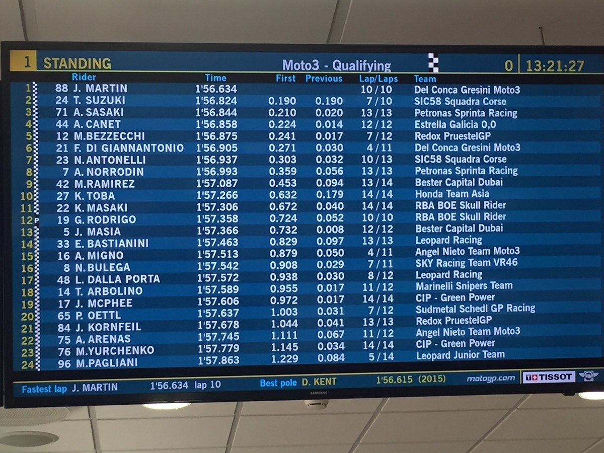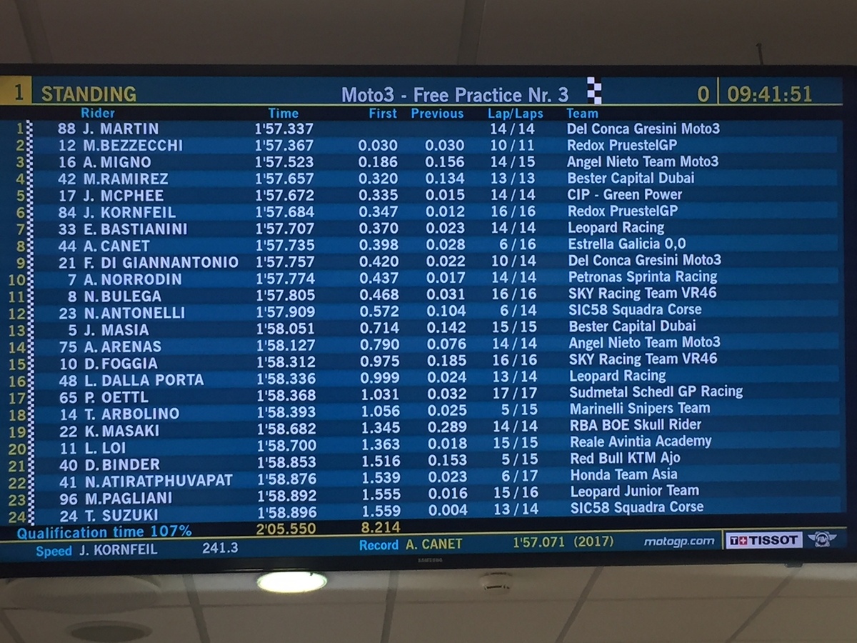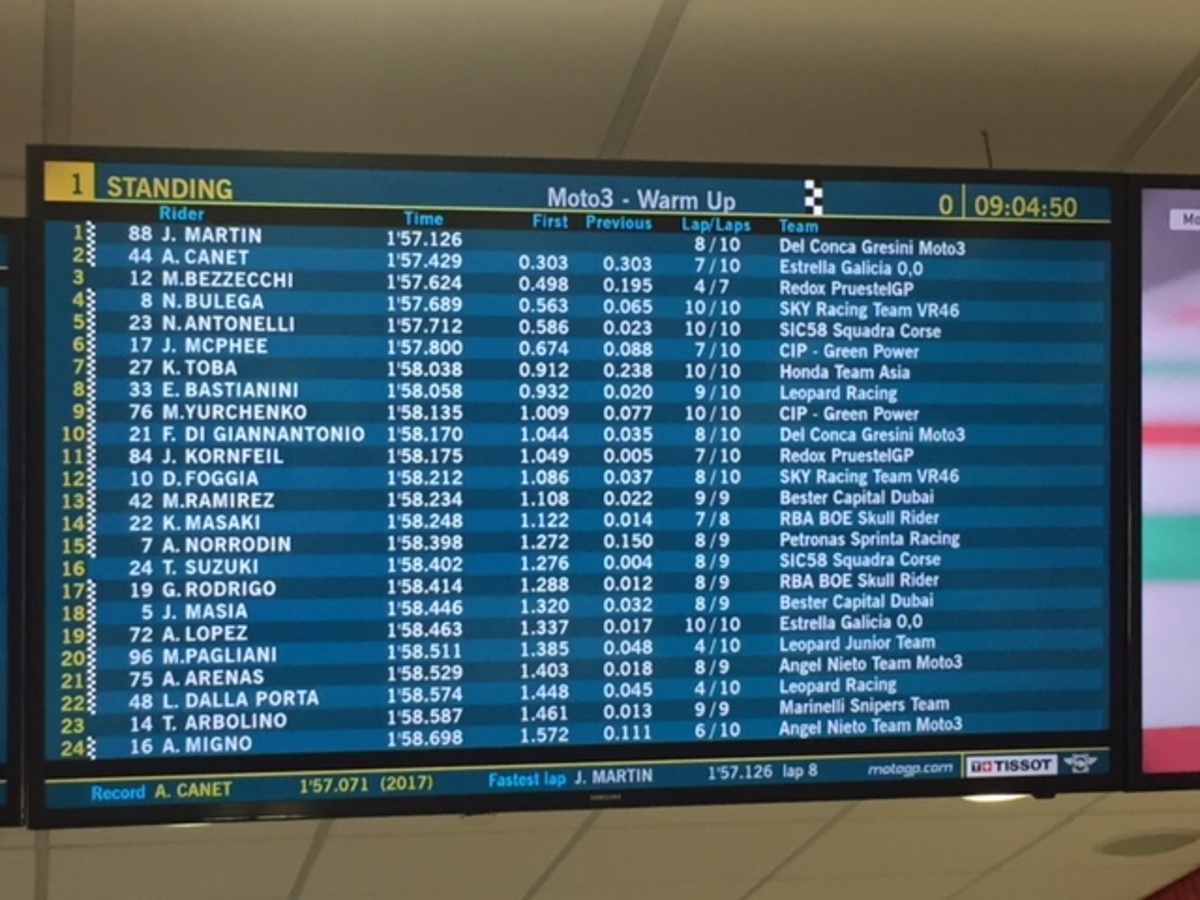 Concluse le FP2 Moto3: Martin, Canet, Suzuki, Oettel, Toba