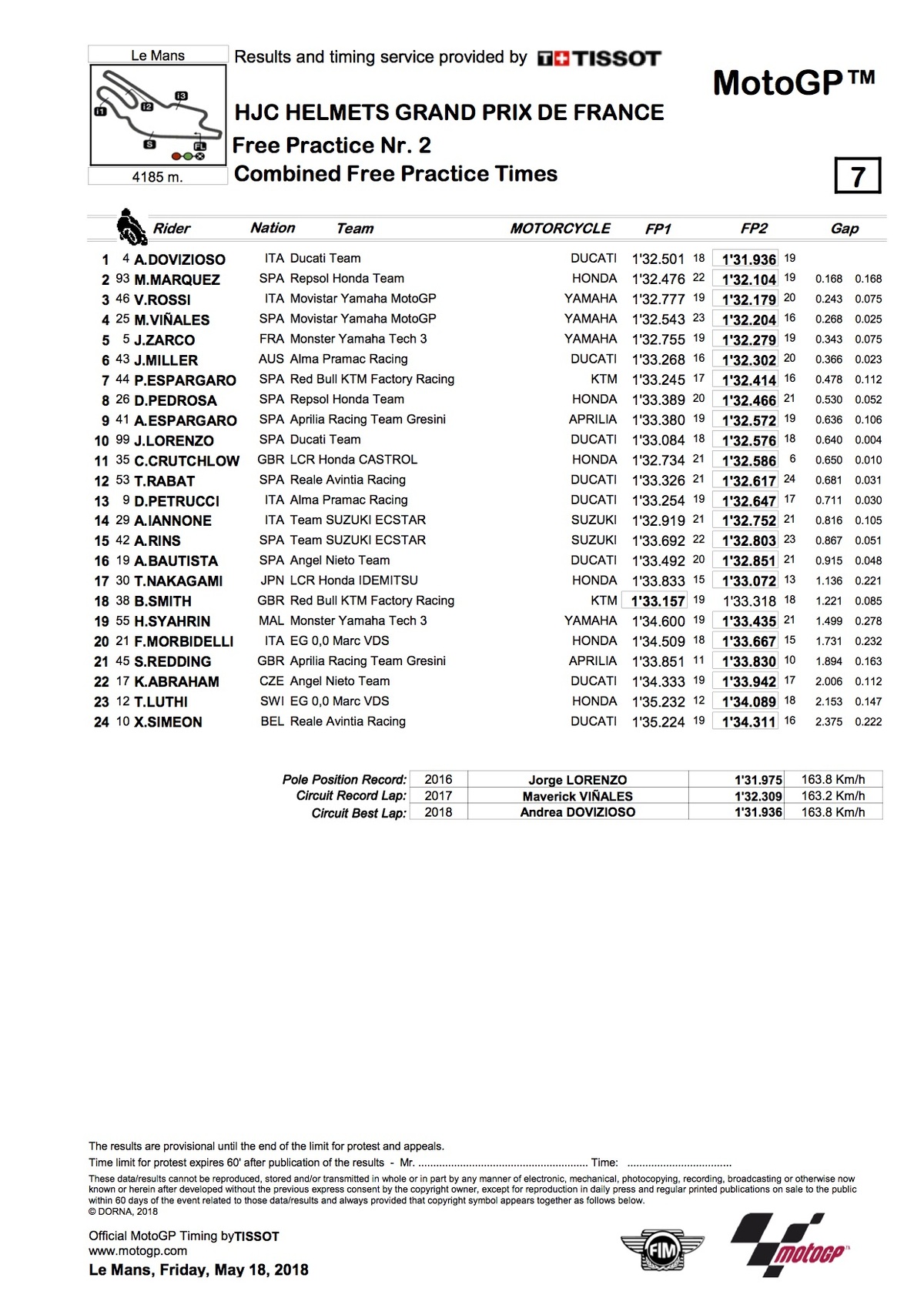 l’IT migliore è quello di Rabat in 1’32”130, quindi oltre tre decimi più veloce del miglior tempo di Marquez!