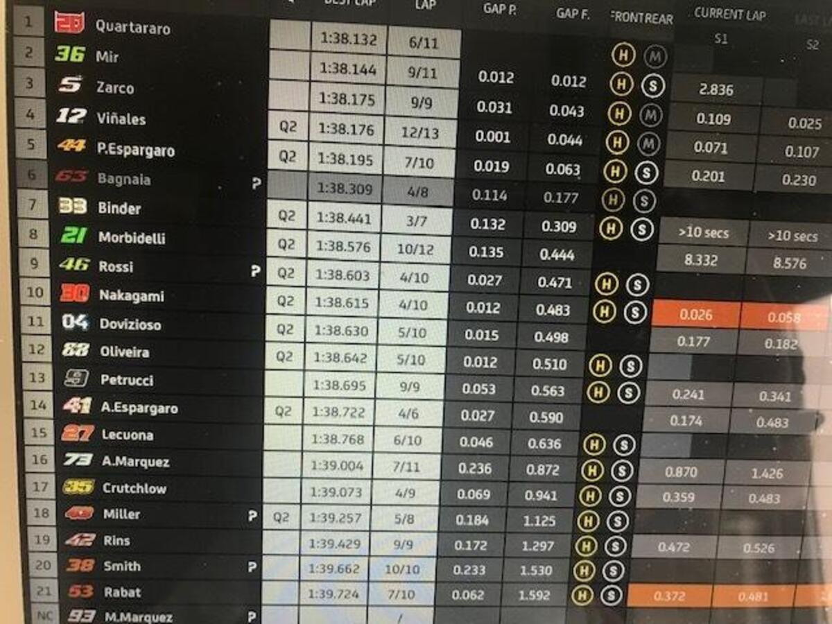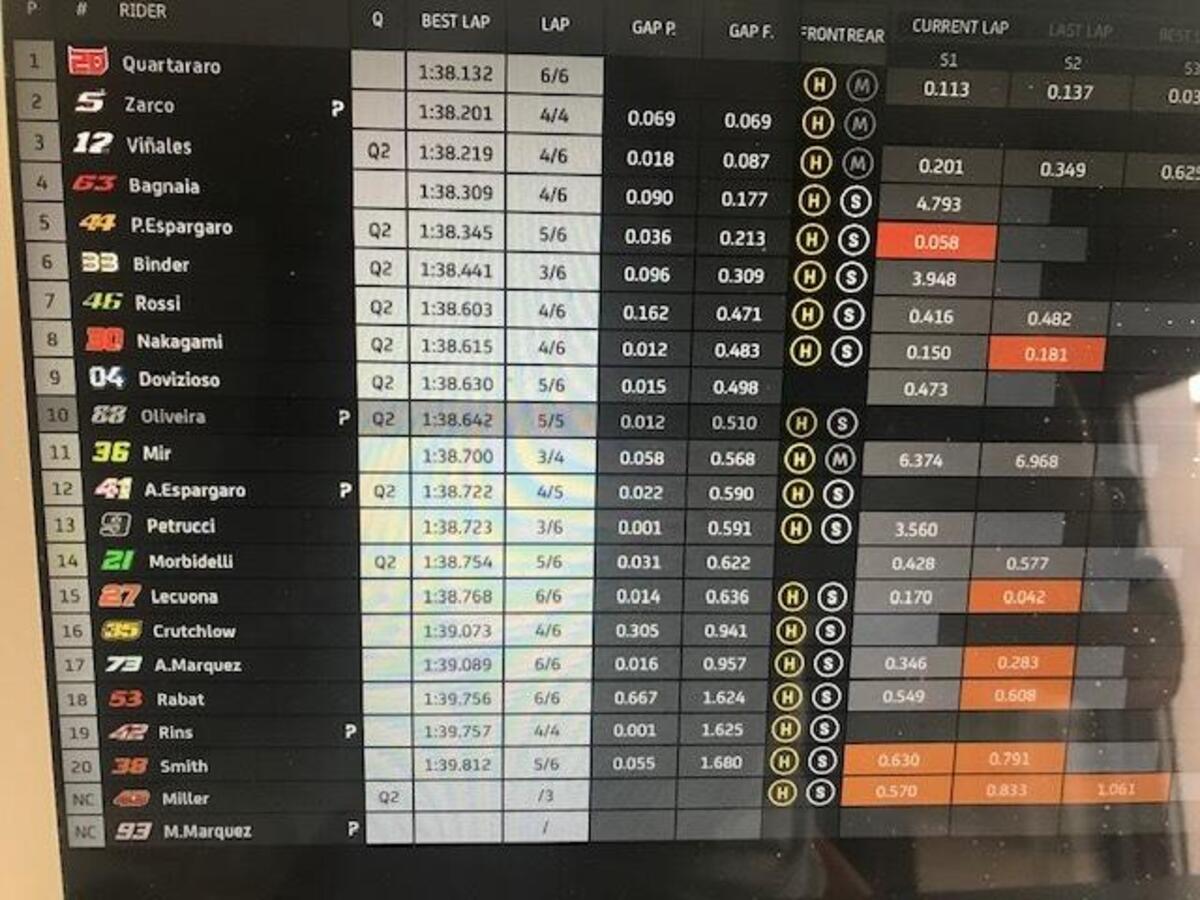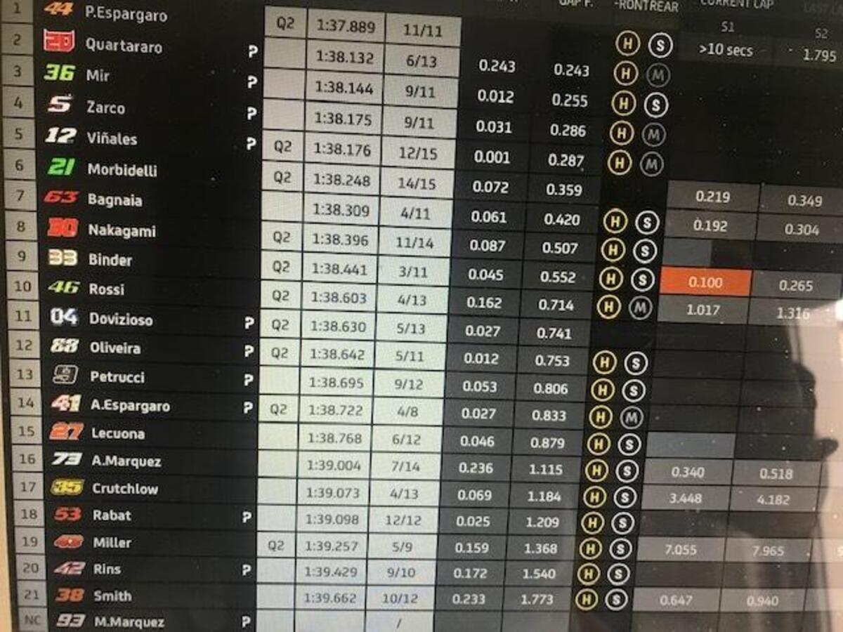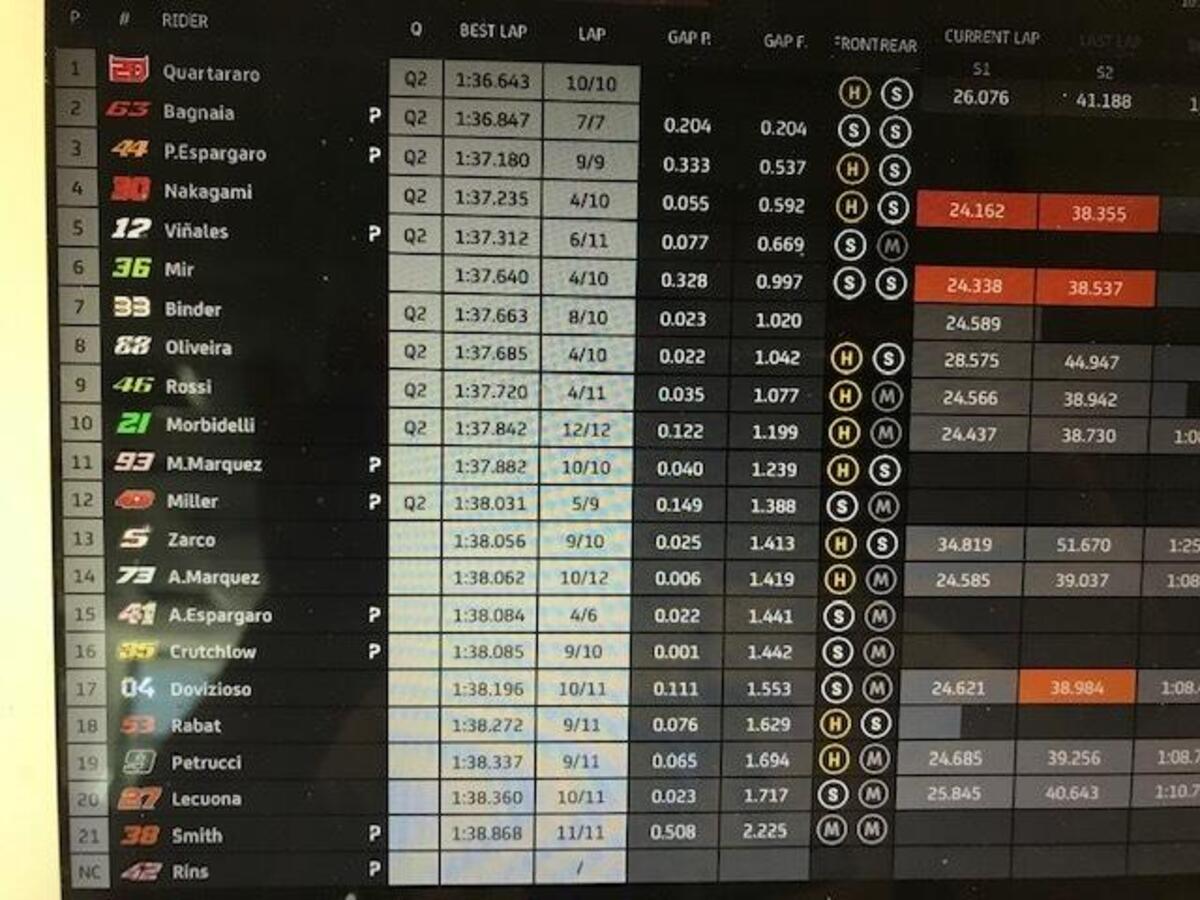 Rins: “Sabato ho avuto una caduta molto dura, ho perso l’anteriore molto presto in entrata alla curva 11, sono arrivato velocissimo alla sabbia, ho perso il posteriore e sono saltato dalla moto. Sono caduto nella via di fuga con la spalla. Ho cercato di recuperare al meglio qui al box con il mio fisioterapista. Adesso ho superato “l’esame”, ma solo domani potrò capire le mie condizioni: se avrò troppo dolore e non sarò sicuro a guidare, mi fermerò. Dopo le FP3 avevo un ottimo passo, dopo la caduta ho detto a Davide Brivio: corro. Poi, però, il dolore è aumentato e non potevo correre. Per domani ci provo, vedremo”.