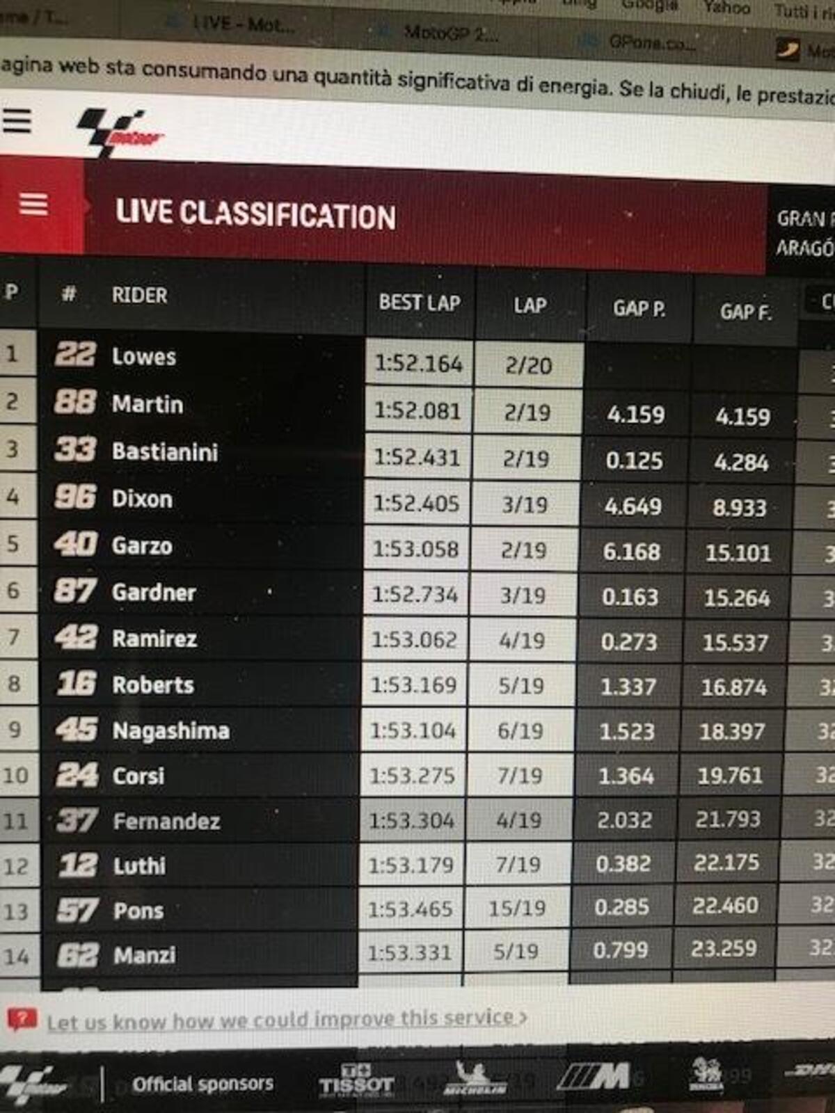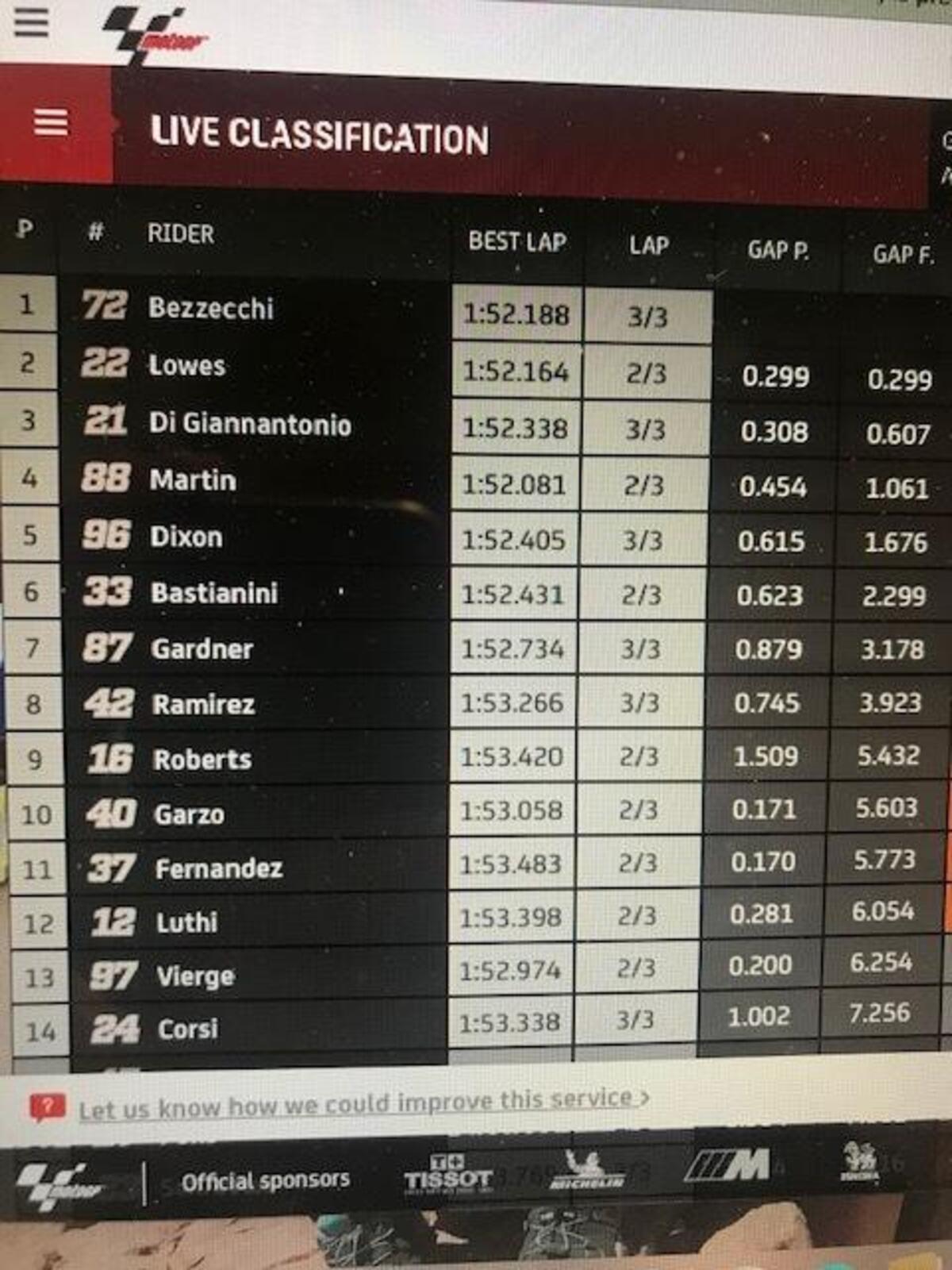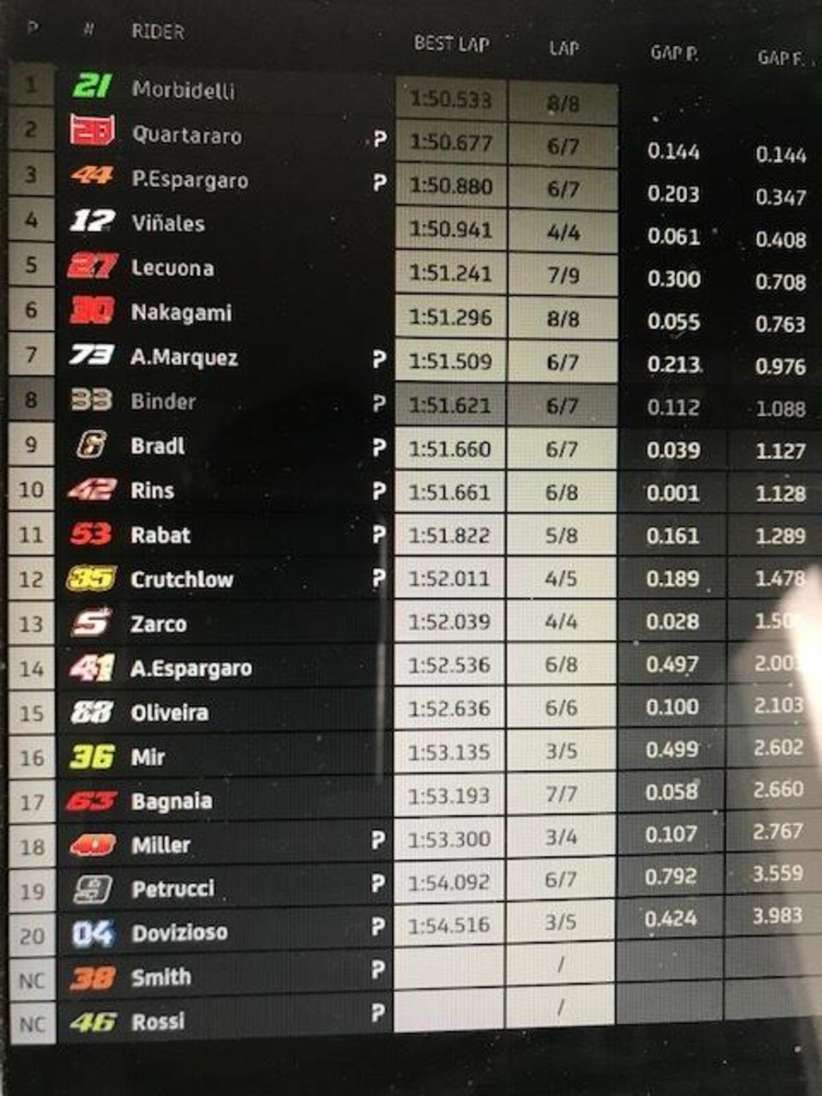 “Oggi tutte le Ducati indietro, significa che ci sono delle motivazioni tecniche. La differenza di passo con i più veloci è grande, ma questa differenza non è reale: vediamo domani cosa riusciamo a fare, sicuramente oggi è stato un giorno particolarmente difficile.
