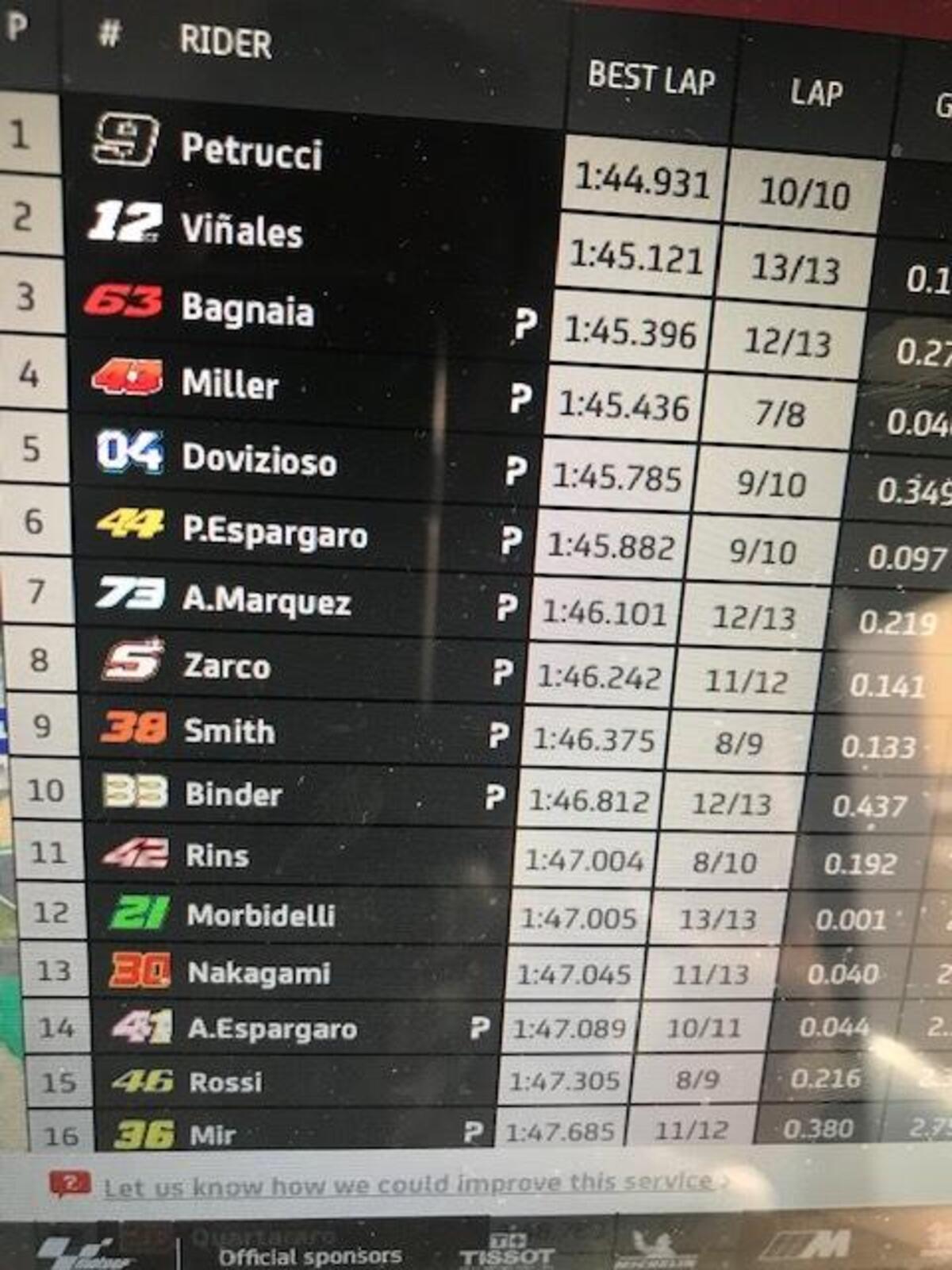 “Non ho aspettative, se non per il prossimo passo, che è fare un buon risultato a Le Mans, poi ad Aragon1… Questa è la ia aspettativa: non penso ad altro. Credo di essere ancora in gioco per il mondiale, quindi non ho pensato a come aiutare, eventualmente, Quartararo. E il team non mi ha chiesto nulla su questa cosa.