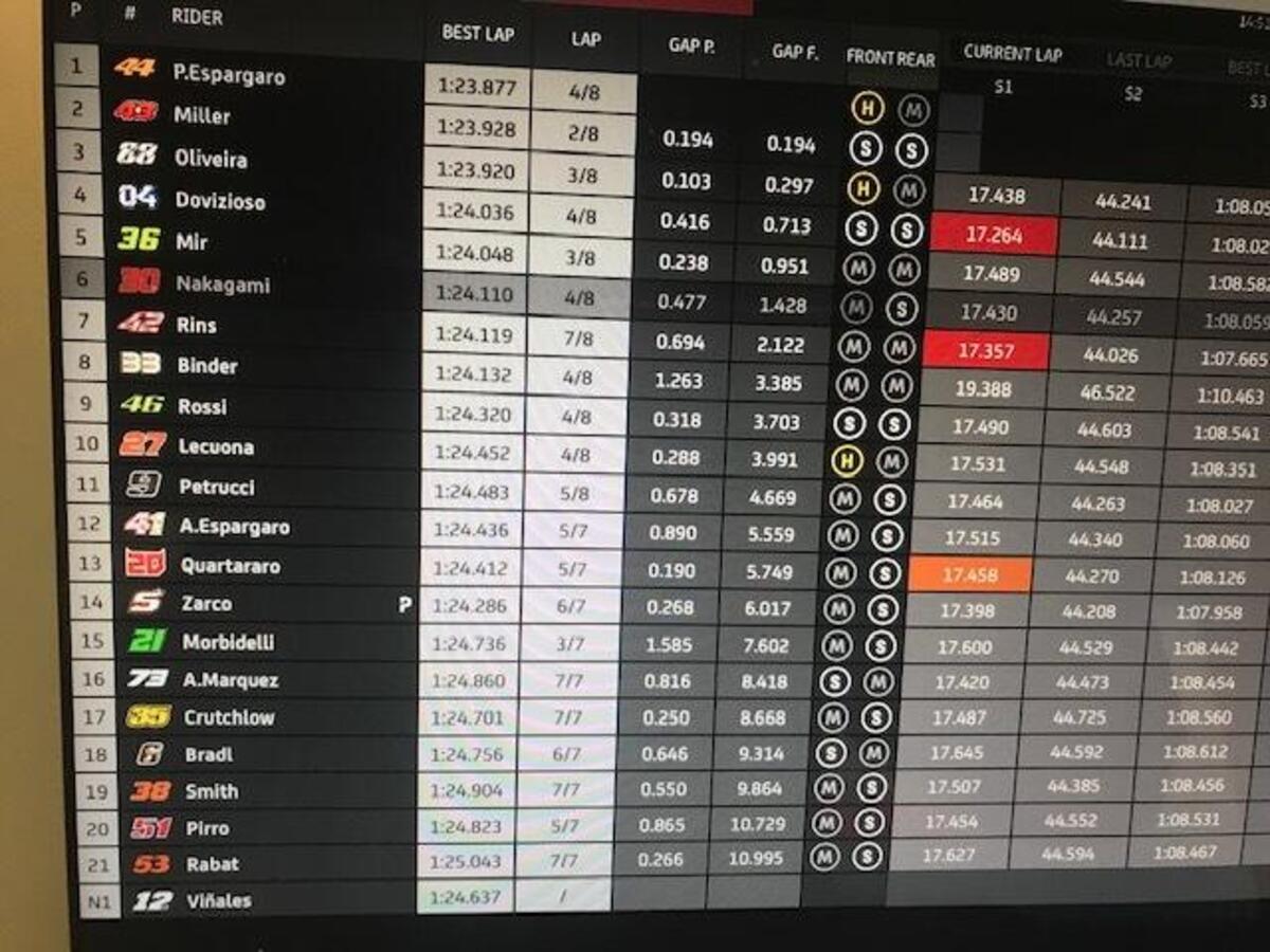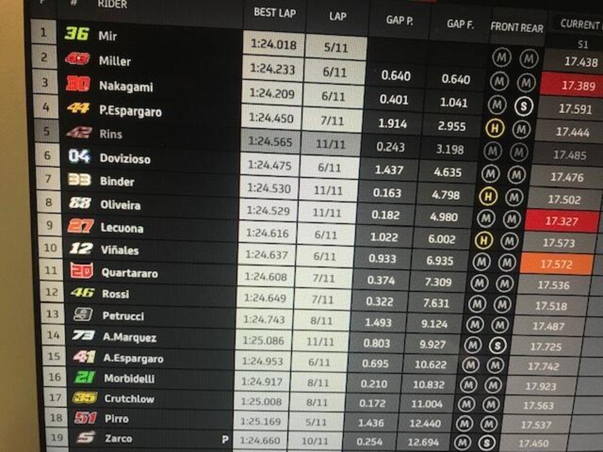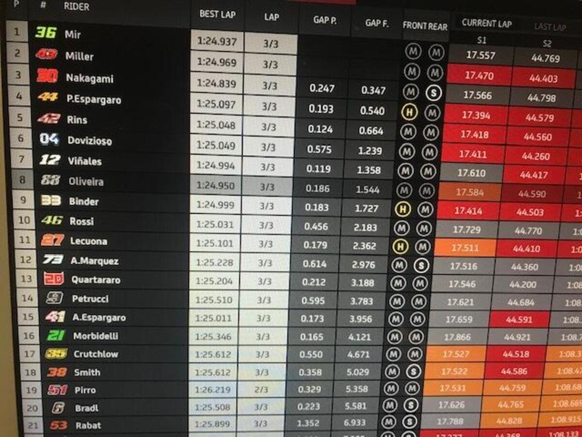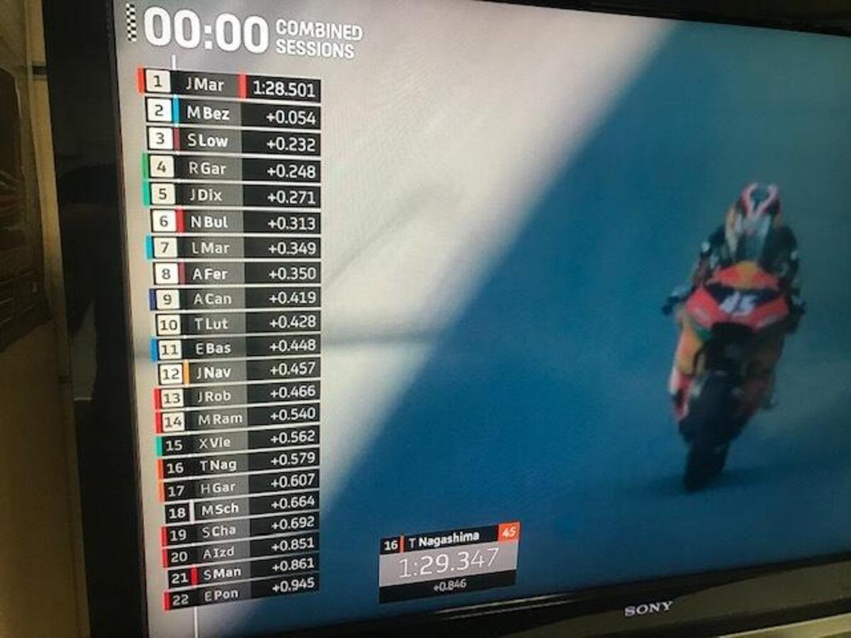 Joan Mir: “Grande lavoro settimana scorsa, il miglior fine settimana per me: abbiamo conquistato un ottimo risultato, che avevamo mancato prima per diversi motivi. Abbiamo una buona base, una moto competitiva: perdiamo un po’ nel T1 e nel T2, potevo recuperare nella seconda parte. Abbiamo punti forti e deboli, abbiamo buone informazioni dallo scorso GP”.