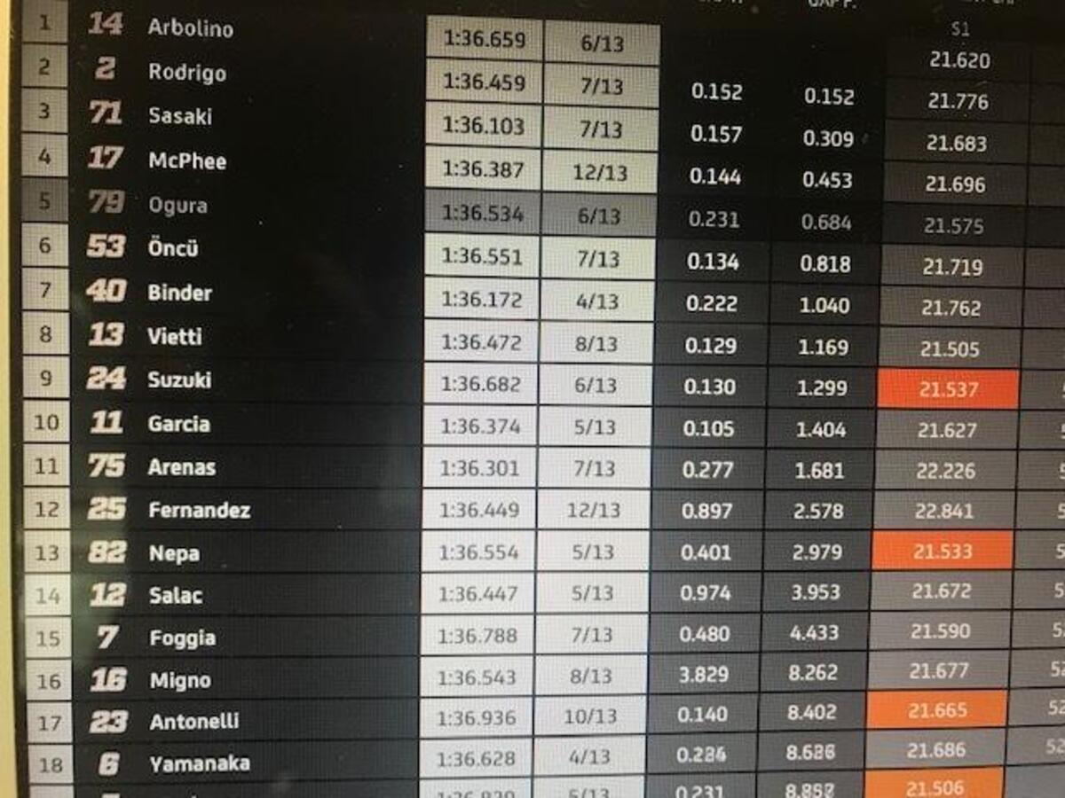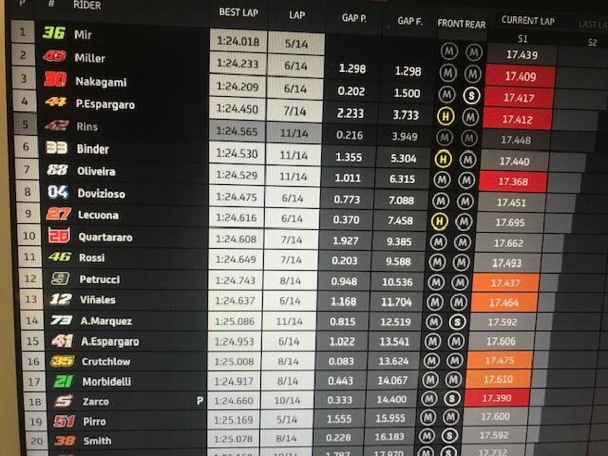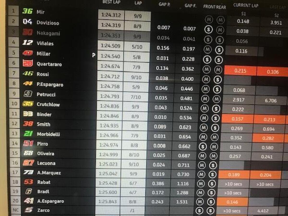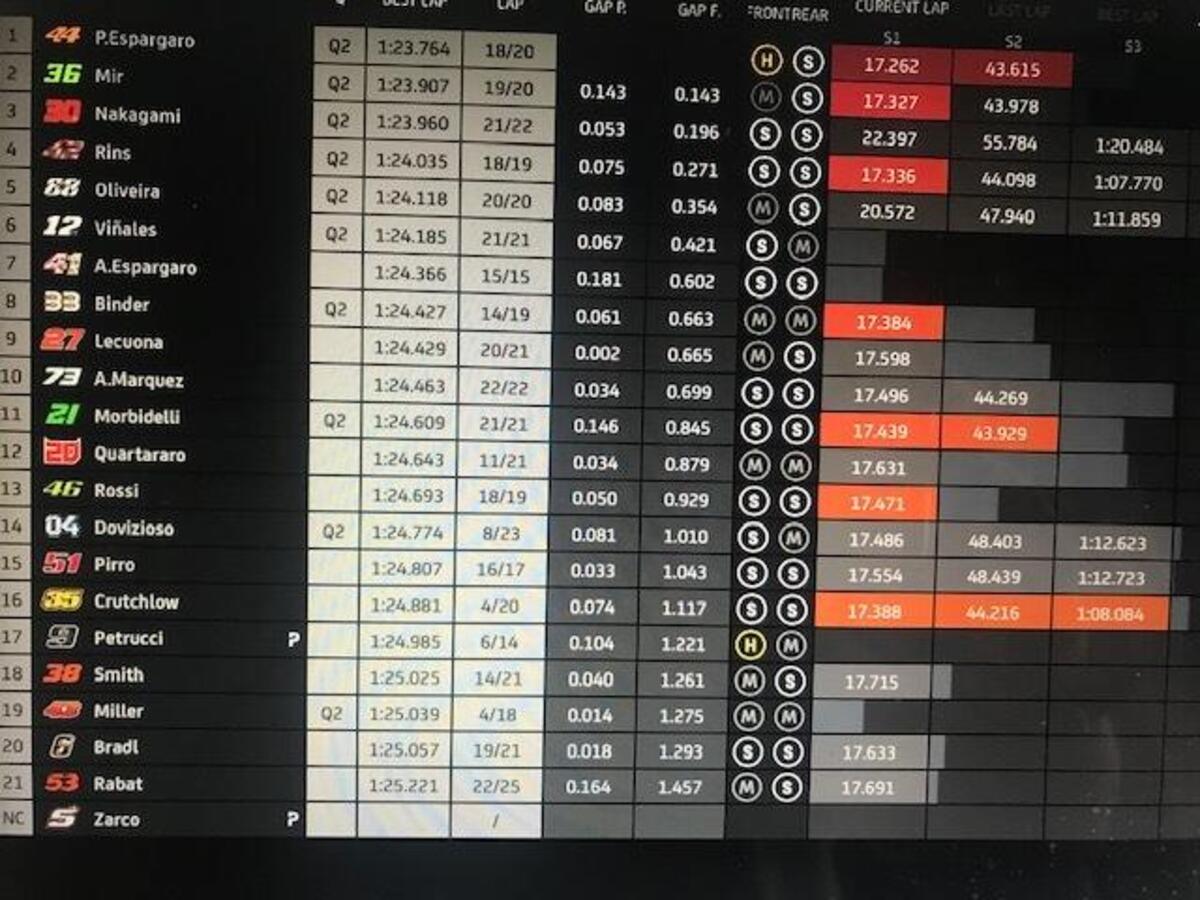 Joan Mir: “Grande lavoro settimana scorsa, il miglior fine settimana per me: abbiamo conquistato un ottimo risultato, che avevamo mancato prima per diversi motivi. Abbiamo una buona base, una moto competitiva: perdiamo un po’ nel T1 e nel T2, potevo recuperare nella seconda parte. Abbiamo punti forti e deboli, abbiamo buone informazioni dallo scorso GP”.